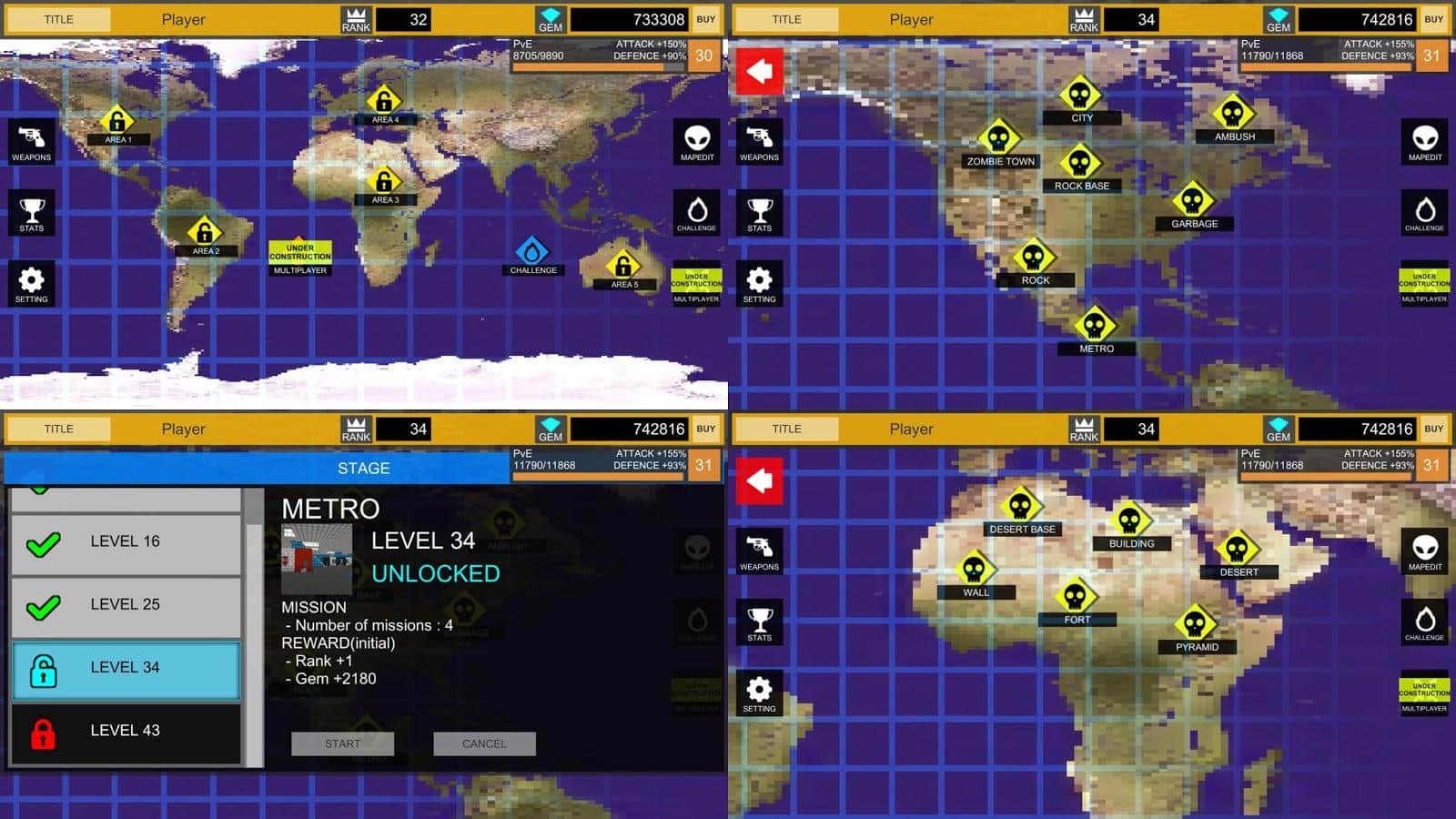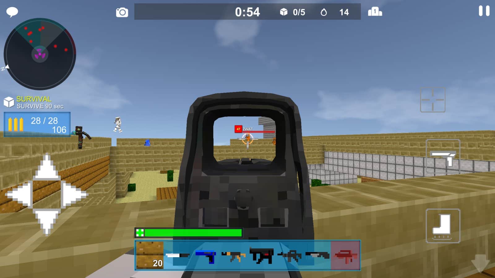 Ölüm Blokları 4 – Android için bir aksiyon oyunu, burada sayısız düşman ve zombi ile savaşmanız gerekiyor. Güçlü silahlarınızı alın ve oyunun birçok lokasyonunda düşmana karşı sürekli ateş açarak hareket edin. Şehir sokaklarında, çöl ortamında zombilerle savaşın ve özel bloklar kullanarak kendinize sığınak inşa edin. Haritayı ve düşmanların yerini gösteren radarınızı sürekli kontrol edin, böylece onlara yaklaşma şansı vermeyin ve sürpriz bir saldırıya uğramayın. Farklı silahlar kullanarak, elinizde bıçak ile yakın dövüşe girin ve keskin nişancı tüfeği ile düşmanları yok etmek için uygun bir pozisyon alın. Düşman hava araçlarını yok edin ve verilen tüm görevleri yerine getirin.