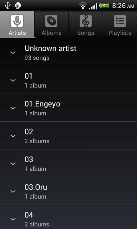 Varsayılan Müzik Çalar - Bu en basit müzik çalar, ondan daha basitini bulamazsınız, ama bu onun ana özelliği. Basitliği sayesinde, akıllı telefonun kaynaklarını neredeyse hiç tüketmez ve buna rağmen kaliteli müzik sesi verir. Ayrıca, bu kadar basit bir çaların kullanımı da çok kolaydır, basit bir arayüze sahiptir ve birçok kişiye hitap edebilir.