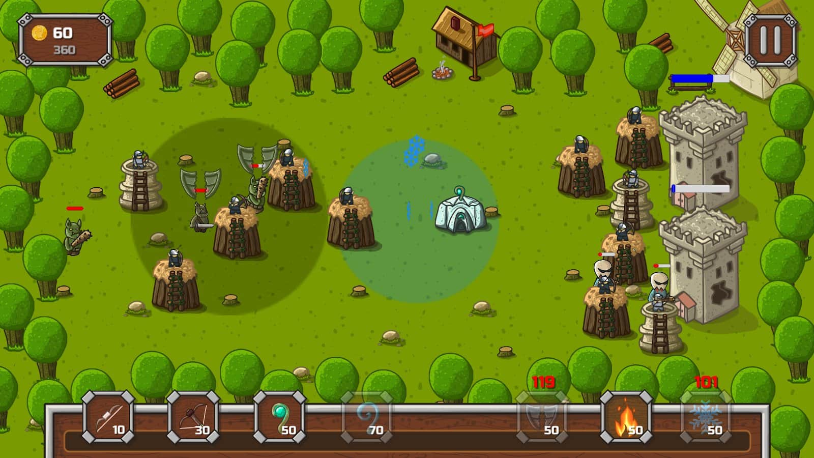 Kulelerimi Savun! - Android için heyecan verici bir strateji oyunudur, burada kaleni düşmanlardan koruyacaksın. Bu oyunda görevin, farklı yerlerde kuleler inşa etmek ve rakiplerini yok etmek olacak. Savaş taktiğini geliştir ve rakibin güçlü ve zayıf yönlerini göz önünde bulundur. Büyüler kullanarak rakiplerin sağlık ve savunmalarını azalt, ayrıca onları yavaşlat. Savaşlarda zafer kazan ve liderlik tablosunda daha yükseklere çıkarak puanını artır. Bu oyunda her biri farklı özelliklere sahip birkaç tür kule bulacaksınız.
