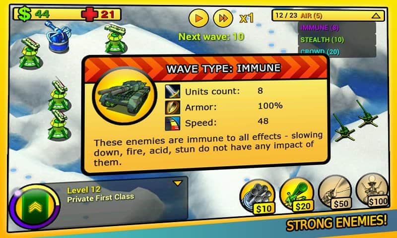 Savunma Hattı - Android için bir oyun, Tower Defense türünde. Göreviniz, üssünüzü güçlü bir rakibin saldırısından korumaktır. Savunma için, her biri kendi benzersiz özelliklerine ve savaş gücüne sahip 15 yeni savunma kulesine sahip olacaksınız. Göreviniz kuleleri doğru bir şekilde yerleştirmek - bu, düşmanınıza karşı zaferin ana kriteridir.