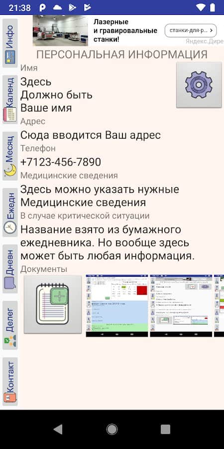 - Bölümler: kişisel bilgiler, takvim, günlük, aylık, kişiler, günlük vb.