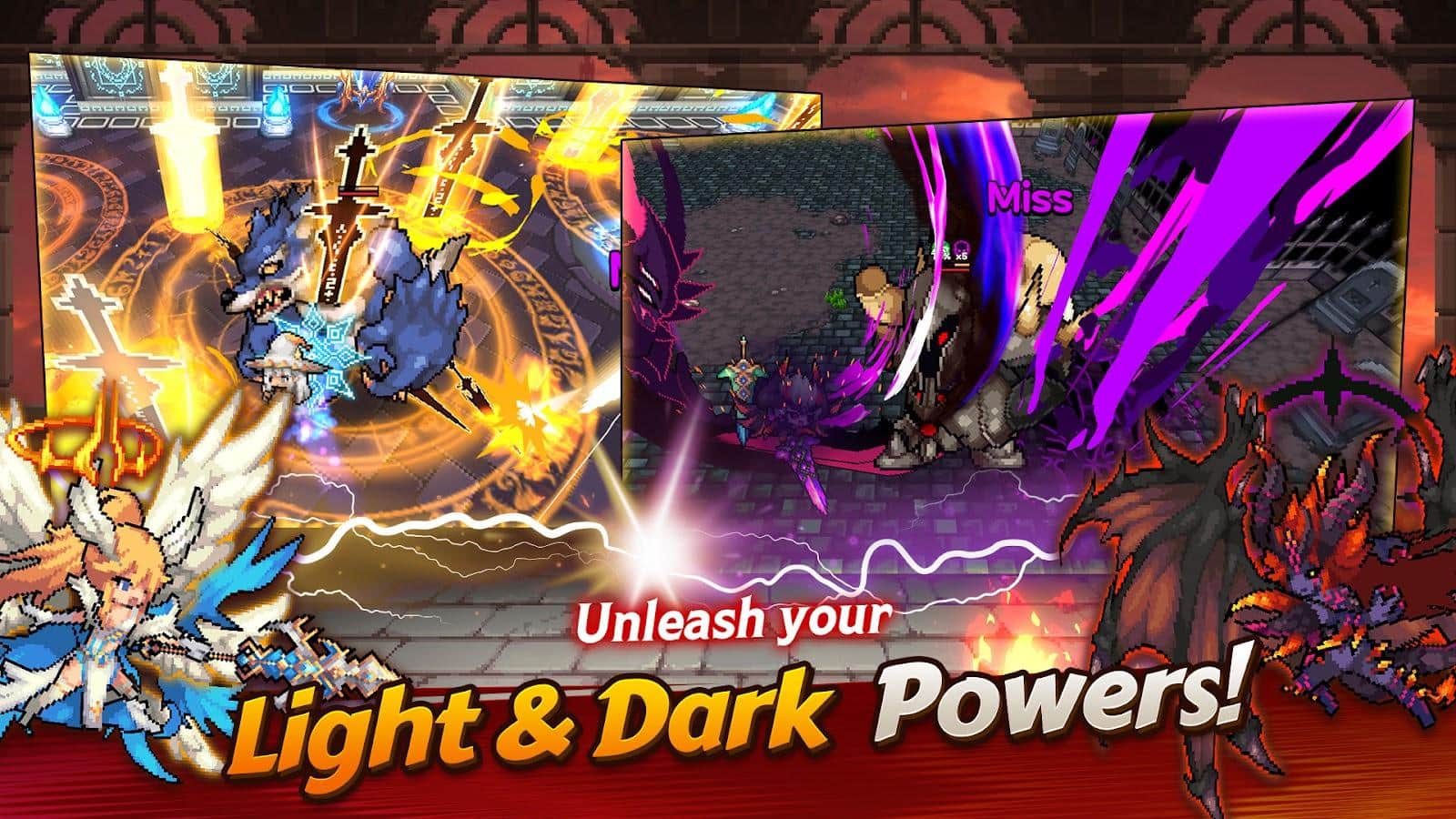 Yarı tanrıların dünyasına dalın, burada hem meleklerin hem de şeytanların gücüne sahip olabilirsiniz. Ama dikkatli olun, çünkü Başmelek Mikail ve Baş Şeytan Lucifer, cenneti fethetmeye çalıştığınızda sizi muhteşem güçten mahrum ettiler. Sizi yalnızca beklemede hızlı bir büyüme ve heyecan verici ödüller değil, aynı zamanda tanrıdan daha güçlü olma fırsatı da bekliyor. Tanrıların gücünü hissetmek ve görsel efektlerin tadını çıkarmak için 2.5D grafikleri ile muhteşem savaşlara hazırlanın. Işık ve karanlığın gücünü kullanarak benzersiz bir yetiştirme yöntemi geliştirin ve ilahi kılıçla savaş alanını fethedin.