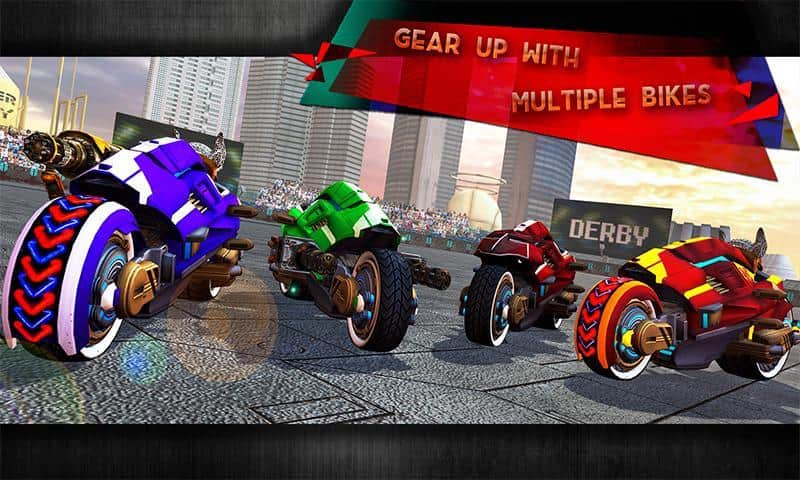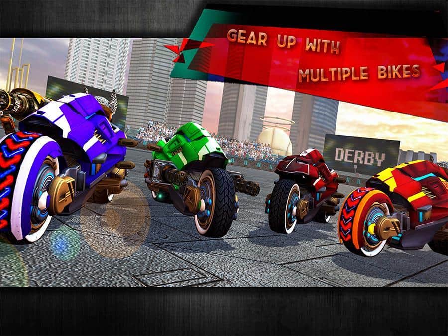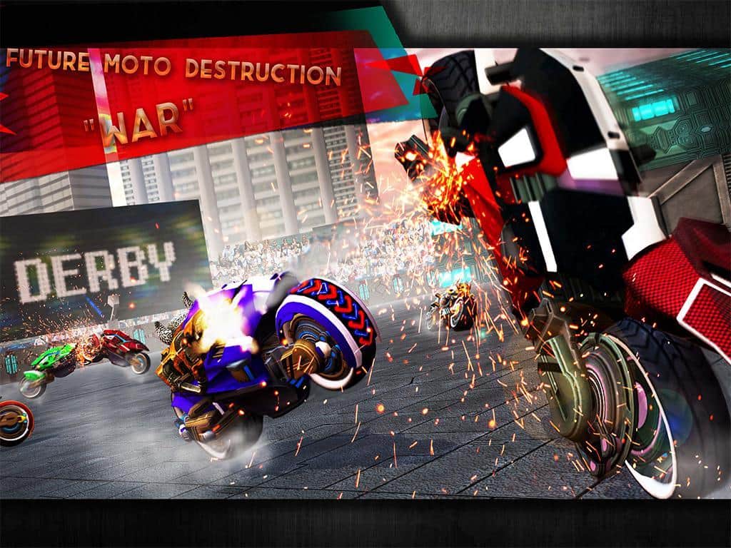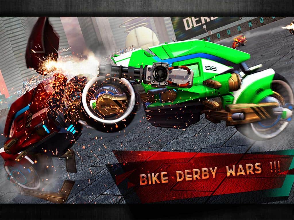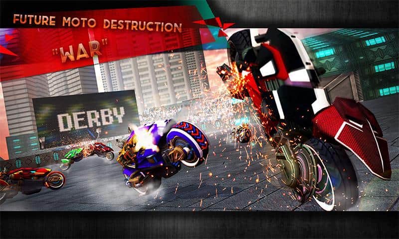 Yıkım Derbisi Gelecek Bisiklet Savaşları – sizi geleceğe taşıyacak bir Android oyunu, burada tehlikeli düellolara katılacaksınız. Bu oyunda, güçlü silahlarla donatılmış fantastik motosikletleri kontrol edeceksiniz ve düşmanla savaşabileceksiniz. Güçlü bir rakibe meydan okuyun ve arenaya çıkın. Arenada büyük bir hızla sürün ve rakibinizin motosikletinizi yok etmesine izin vermeyin. Güçlü silahlarınızla düşmanınıza isabet etmeye çalışın ve inanılmaz manevralar yaparak onun motosikletine çarparak rakibinize kazanma şansı vermeyin. Yeni motosikletler keşfedin ve oyunun ilerleyen dönemlerinde onları geliştirin.