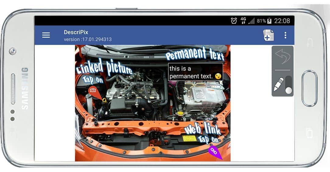DESCRIPIX - Bağlantılı resimler - Bazen bir şeyi birine açıklamak çok zor olabiliyor ve burada bu basit ama oldukça eğlenceli uygulama devreye giriyor. Herkesin kendi projesini oluşturup resimler ve açıklamalarla tanımlayabilmesi için tasarlanmıştır. Örneğin, bir arabanız var ve onun avantajlarını belirli detaylara işaret ederek açıklamak istiyorsunuz. Bu uygulama ile detayları seçiyor, oklarla işaretliyor ve onlarla ilgili söylemek istediklerinizi yazıyorsunuz. Fikir çok basit ama oldukça etkili.