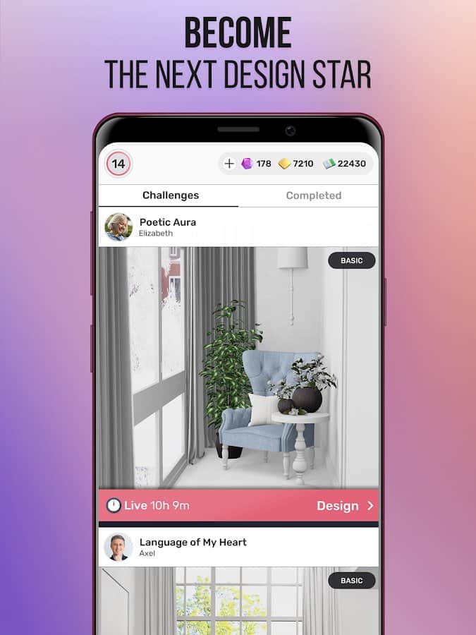 Tasarım Yıldızı: Ev Yenileme - büyük evlerde veya dairelerde birçok odanın görünümünü değiştirin ve popüler bir iç mimar olmak için benzersiz bir stil bulun! En iyi iç mekan için yarışmalarda kazanın, başkalarına oy verin, en iyi eşyaları sadece fiyatına değil, güzelliğine göre seçin, Pinterest'i inceleyin ve seçtiğiniz görüntüleri mümkün olan en iyi şekilde tekrar etmeye çalışın. İşlerinizi sosyal medyada paylaşın ve arkadaşlarınıza gösterin. Tüm lezzetiniz, yaratıcılığınız ve kombinasyonlar üzerindeki deneylerinizdeki kolaylığınızla herkesi etkilemeye hazır olun!