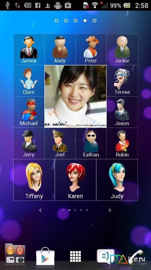 Masaüstü Kişi Widget'ı - sık kullanılan kişileri masaüstüne otomatik olarak kaydeden bir Android uygulaması. Artık kişileri bulmak çok daha hızlı ve eğlenceli, farklı fotoğraf uzantılarıyla kişileri yerleştirin, eğer yoksa uygulamada eğlenceli simgeler var ve bunlardan kolajlar oluşturun. Artık telefonunuzda 19 kişinin yer aldığı bireysel sayfalar olacak ve bu sayfalardan 5 tane olabilir.