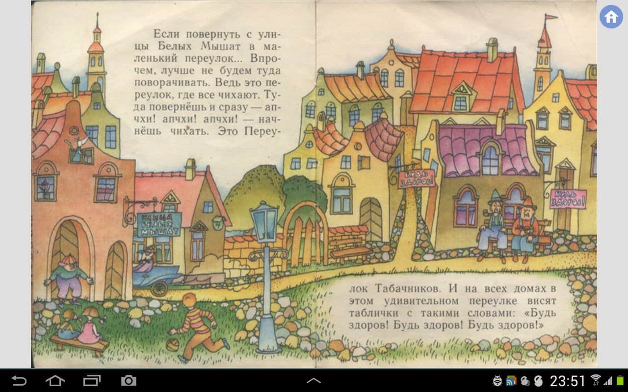 Bu uygulamanın öncelikle çocuklara mı yoksa çocukluk özlemi çeken yetişkinlere mi yönelik olduğunu söylemek zor. Her durumda, hem çocuklar hem de yetişkinler, sevilen çocuk masallarından gelen iyilik ve sıcaklıkla karşılaşacaklar. Çocukluğumuzdan beri sevdiğimiz illüstrasyonlarla dikkatlice taranmış kitapları görüntüleyebilirsiniz. Arayüz basit, çocuk bir yetişkinin yardımı olmadan bile başa çıkabilir ve okuma konforu için sayfaların ölçeklendirilmesi sağlanmıştır. Gerekli kitaplar cihaza indirilir ve sonra çevrimdışı okumak için erişilebilir hale gelir, bu da kullanışlıdır; kitap başına yaklaşık 1-3 MB yer kaplar. Gönüllülerin çabaları sayesinde masal sayısı sürekli artmaktadır.