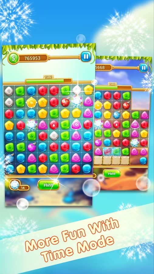 Elmas Efsanesi – Android için üçlü eşleştirme türünde bir oyun, burada oyun alanını kristallerden temizlemeniz gerekiyor. Bu oyunda amacınız, kristallerden mümkün olduğunca uzun sıralar oluşturarak maksimum puan kazanmaktır. İyi bir refleks ile aynı renkteki kristallerden oluşan sıraları mümkün olan en hızlı şekilde toplayın ve alanı bunlardan temizleyin. Zor durumlarda, oyun alanını tek seferde temizleyebilecek küçük bir patlama yaratacak çeşitli güçlendirmelerden yardım alın. Renkli dünyalarda seyahat edin ve yeni dünyaların ve iki oyun modunun tadını çıkarın. Yeterli puan toplayarak liderlik tablosunun en üstüne çıkın.