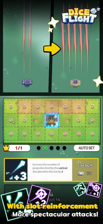Bir ana zarın ve farklı yeteneklere sahip yardımcı zarlarınla birlikte birkaç zarı yönetiyorsun. Savaşmadan önce, yanına alacağın zarları seçmen ve nasıl yerleştireceğine karar vermen gerekiyor. Oyun ilerledikçe, yeni zar slotları açılıyor, böylece harika bir takım kurabilirsin.