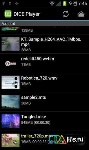 DicePlayer, android için oldukça kaliteli bir video oynatıcıdır ve 720p videoları hızlandırabilir (donanım hızlandırıcısı). Neredeyse tüm popüler ses/video formatlarını ve kodeklerini destekler, altyazılı dosyaları okuyabilir ve Türkçeye çevrilmiştir. Uygulamanın ana avantajları - kullanım kolaylığı ve yeterli çeşitlilikte fonksiyonlar. Android 2.2 için DicePlayer video oynatıcısını ücretsiz indirmeniz kesinlikle gereklidir, çünkü daha hoş ve kullanışlı bir uygulama bulmak zor!