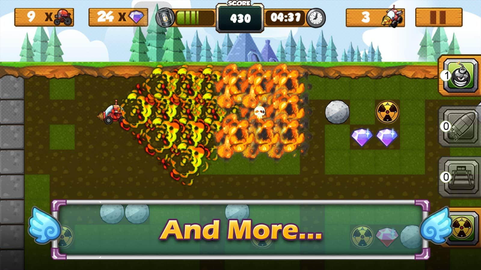 Kazıcı I - Hazine Koşusu, Boulder Dash tarzında yapılmış, Android için heyecan verici bir arcade oyunudur. Bu oyunda, yer altı krallığına girecek ve ana göreviniz seviyedeki tüm elmasları toplamak ve belirli sayıda düşmanı yok etmek olacak. Oyunda, tehlikeli seviyelerde kontrol etmeniz gereken küçük bir aracı alacaksınız ve tüm düşmanları geçmek zorundasınız. Bu oyundaki düşmanlar araçlardır, bunları yok etmek için mayınlar, bombalar yerleştirerek, roket fırlatarak veya üzerlerine dev bir taş düşürerek imha edebilirsiniz. Bu oyundaki silah cephaneniz sizi mutlu edecek ve sıkılmanıza neden olmayacak, ancak düşmanlar da oldukça zeki ve akıllı olacak. Beş lokasyonda seyahat edin ve liderlik tablosunda ve başarılar arasında yükselerek 100'den fazla seviyeyi geçin.