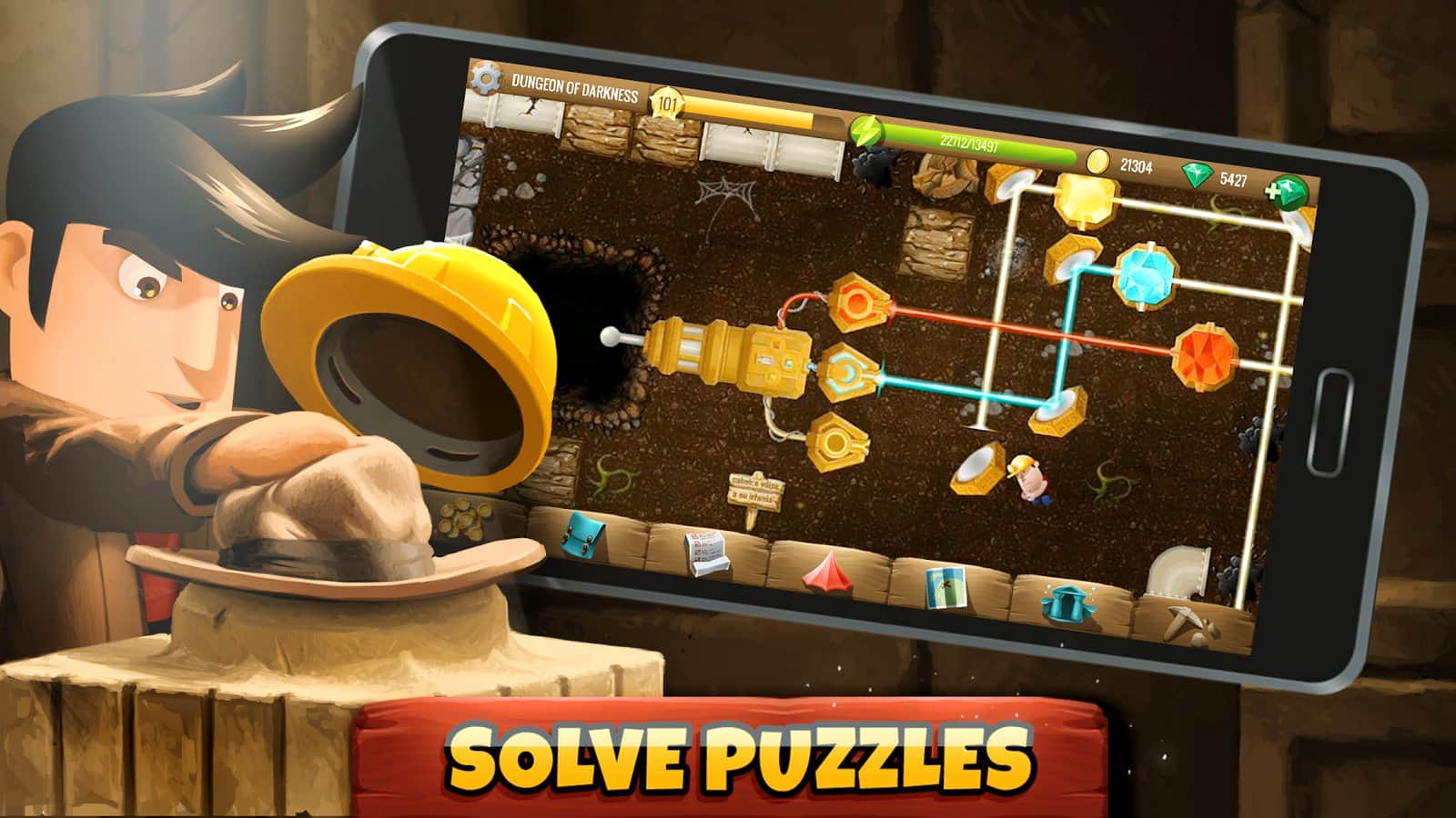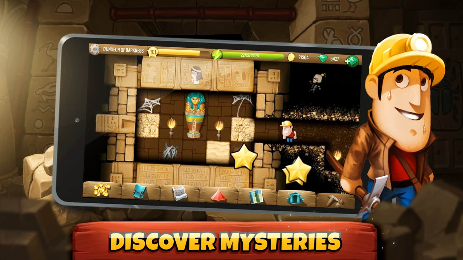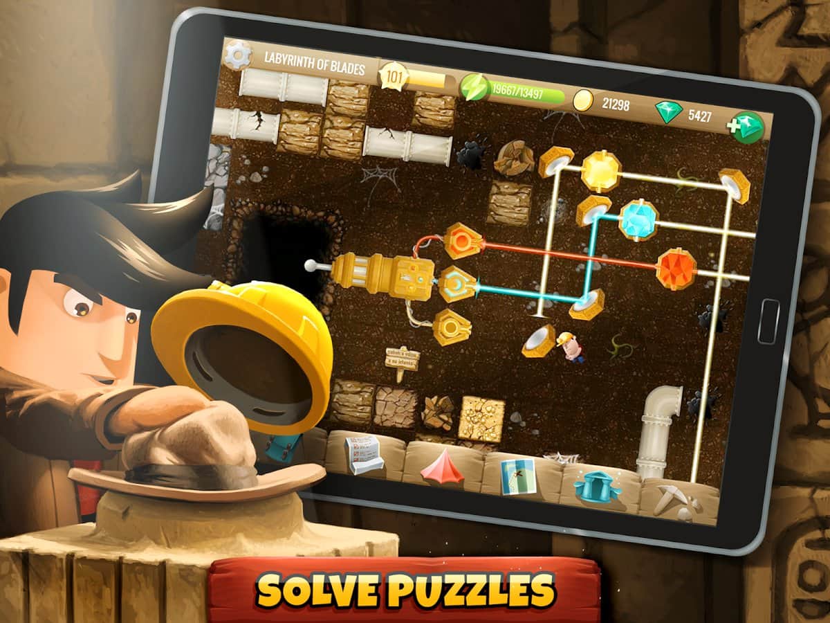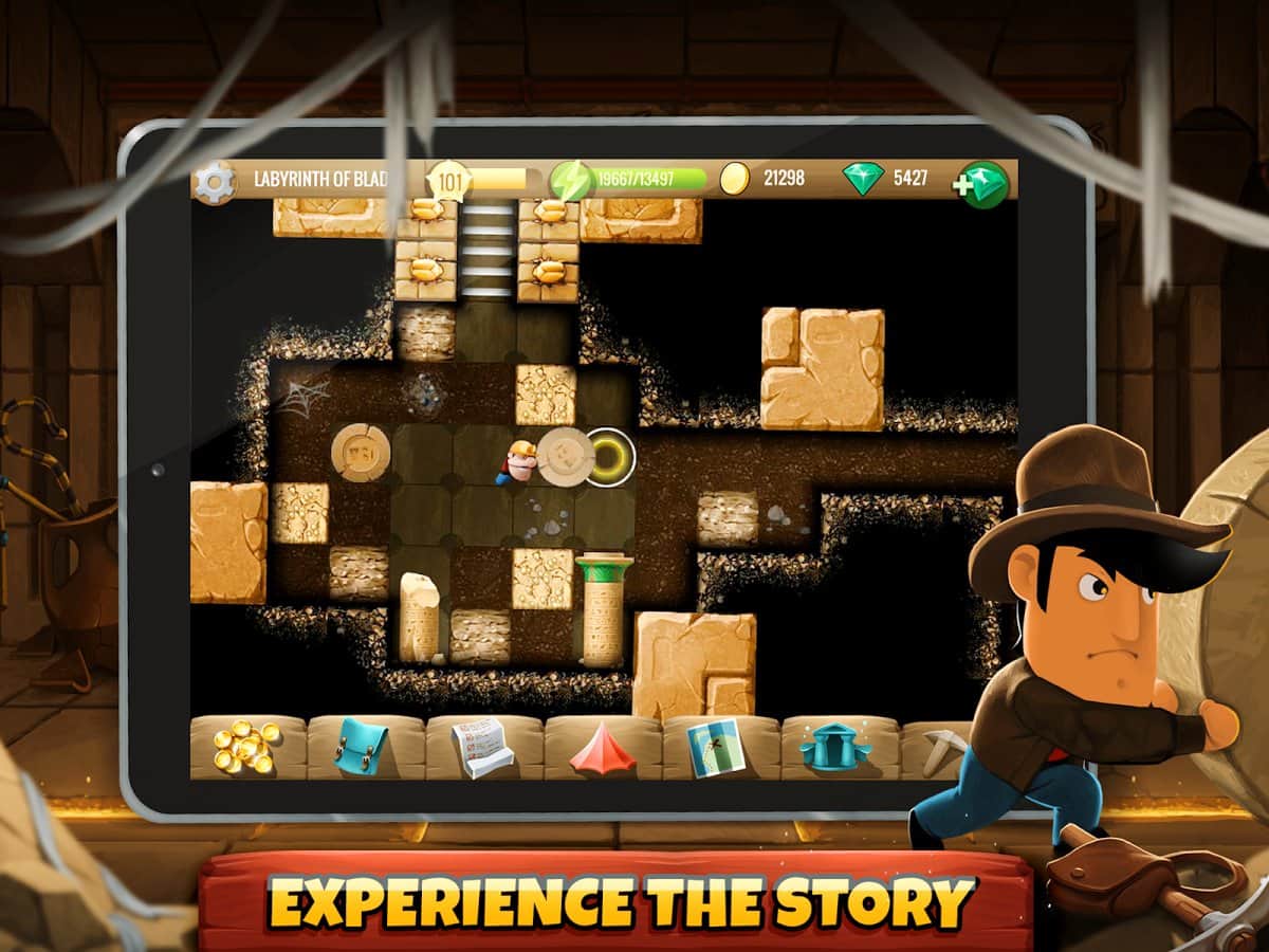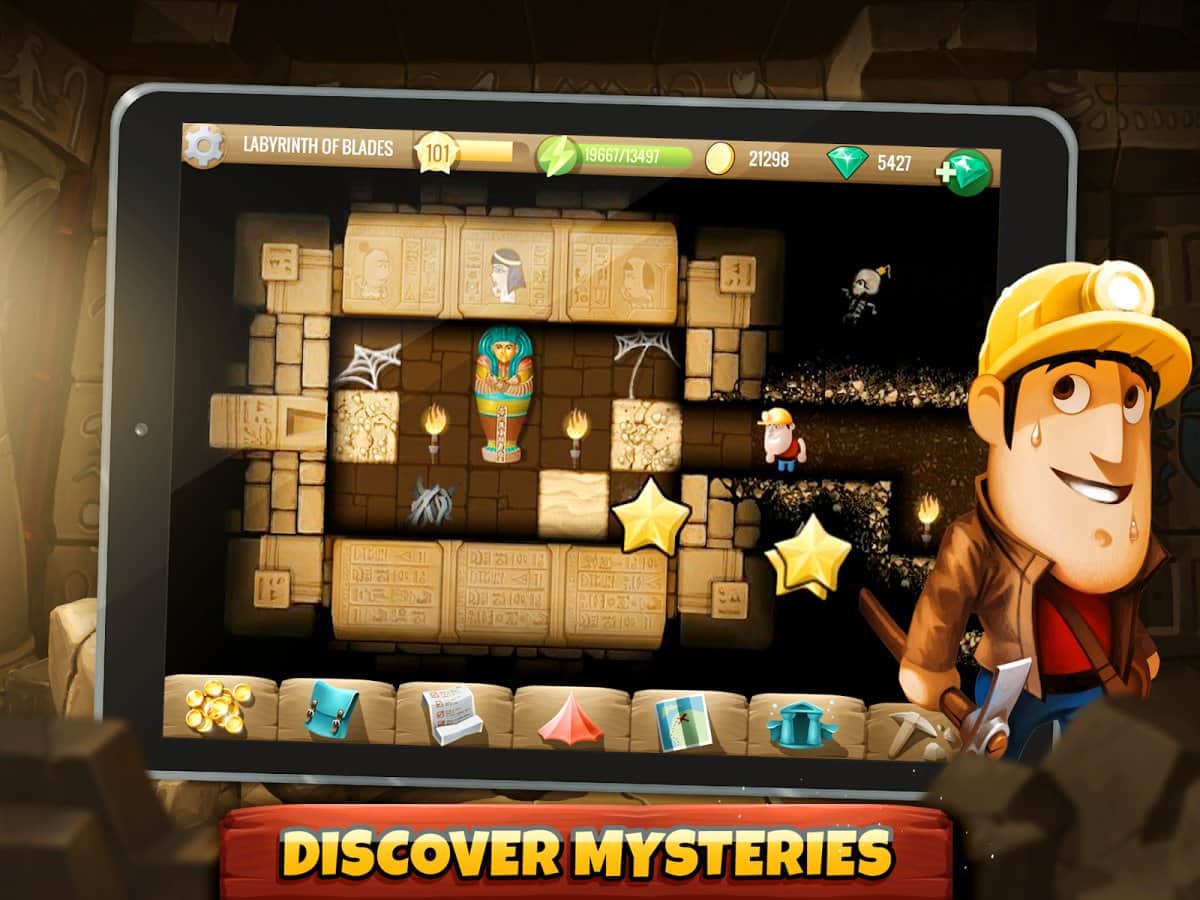 Diggy'nin Macerası - cesur arkeologlar Linda ve Rusty'ye yardımcı olmanız gereken bir macera arcade bulmacasıdır. Oyun süreci şu şekilde yapılandırılmıştır; oyundaki 500'den fazla lokasyonda, tüm hazineyi bulup toplamanız gerekiyor, bunun için tüm bulmacaları çözmeniz şart. Genel olarak, oyun akışı popüler arcade "Kazıcı" ile bir nebze benzer, ancak Diggy'nin Macerası'nın uygulanışı çok daha yüksek bir seviyededir. Oyun yapımcıları hikaye içeriğini de unutmadı; toplamda 100'den fazla farklı karakterle karşılaşacak, yaklaşık 1000 farklı bulmaca çözecek ve 4 farklı dünyada maceralar yaşayacaksınız.