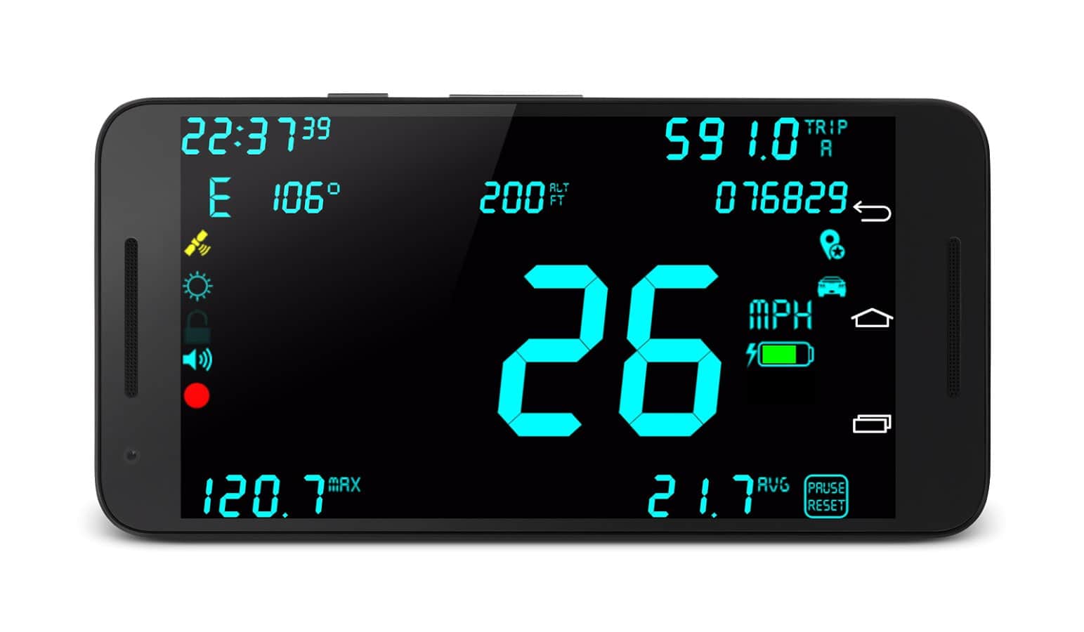 DigiHUD Pro Hız Göstergesi - android için dijital hız göstergesi, seyahatinizin tam hızını ve mesafesini gösterir. Uygulama, araba, bisiklet kullanan veya sadece koşanlar için yararlıdır. Uygulama en doğru verileri sağlamaya çalışsa da, bilgilerin %100 doğru olarak algılanmaması gerektiğini unutmamalısınız. Kesin hız ölçümü için profesyonel cihazlar kullanın. Uygulamada gün/gece modu vardır ve bu, günün saatine bağlı olarak seçilebilir. Hız sınırı koyabilirsiniz, bu sınır aşıldığında uygulama