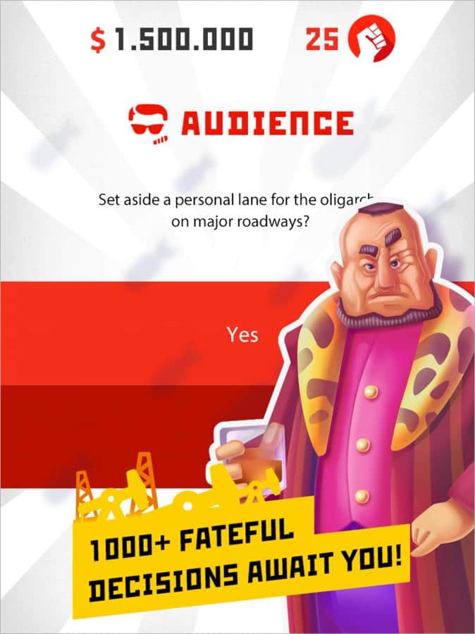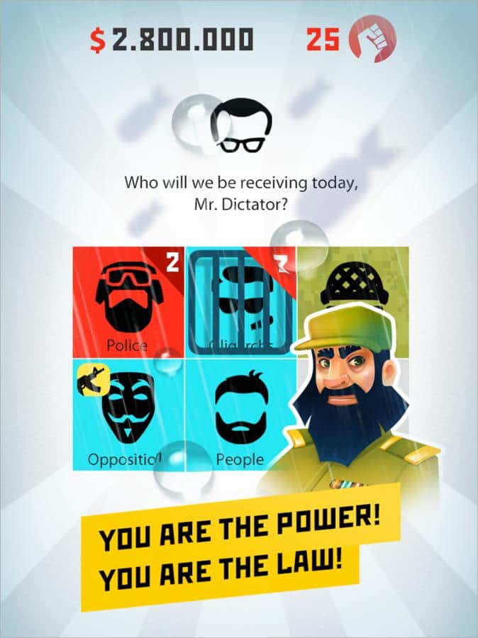 Diktatör: Devrim - oyun, Rusya, ABD, Almanya, İngiltere, Avustralya, Kanada, Fransa ve diğerleri gibi ülkelerdeki en iyi strateji oyunlarından biri olarak kabul ediliyor. Eğer uzun zamandır güç sahibi olmayı hayal ediyorsanız, bu oyun tam size göre. Önceden hazırlanmış ve aldatıcı bir darbeyle mevcut iktidarı devirdiniz ve kendiniz küçük bir ülkeyi tek başınıza yönetmeye başladınız. Hiç sınırsız gücü hissettiniz mi? Bu hissin hepimize hoş geleceğini düşünüyorum. Oyunda