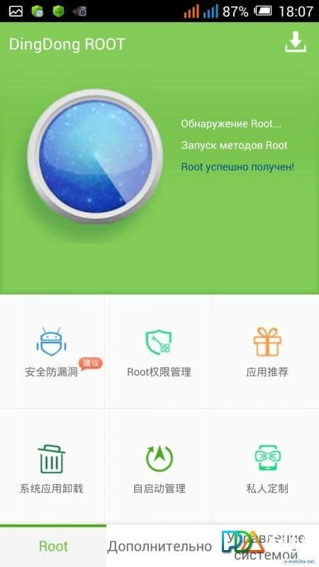 DingDong Root (Kolay Root) – kullanıcı Root haklarını elde etmek için Baidu Root'un benzeri bir uygulamayı sunuyoruz. Özellikleri arasında şunlar bulunmaktadır: başlangıç yönetimi, bildirim yakalama, sistem uygulamalarını kaldırma ve root erişim yöneticisi. DingDong Root (Kolay Root) olanakları 3 sekmeye bölünmüştür, bunlardan biri uygulama reklamlarını içermektedir. Keyifli kullanımlar ve harika ruh halleri dileriz.