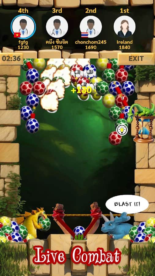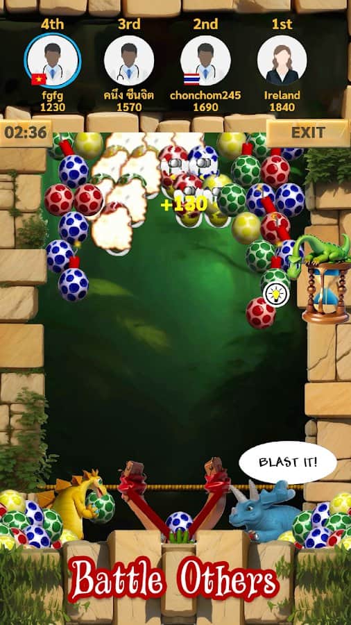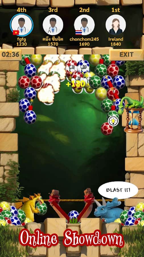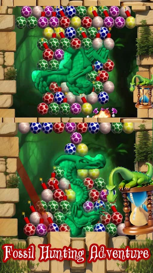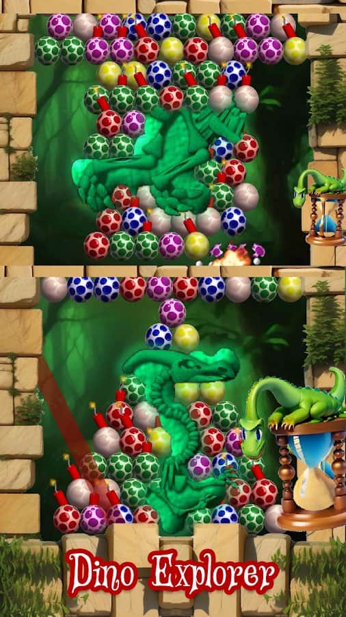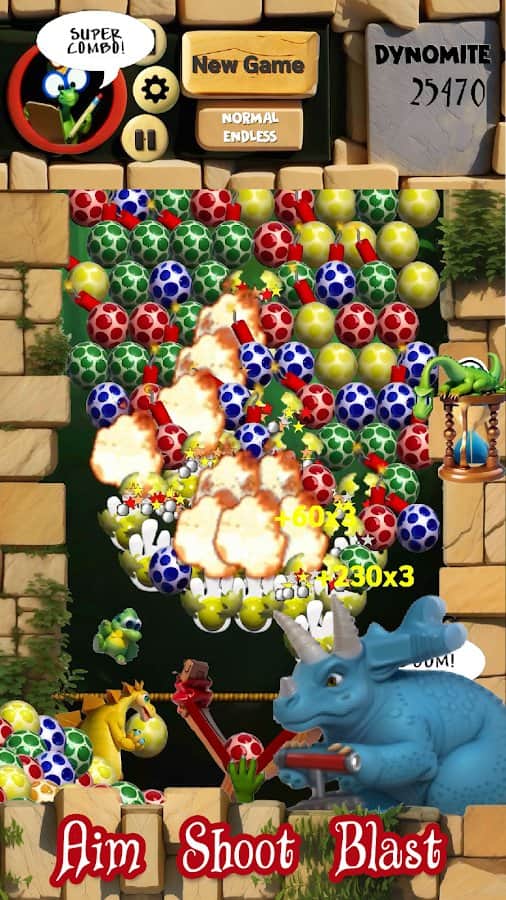 Dino Yumurtaları - 2 dinozor arkadaşı, nereye giderlerse gitsinler peşlerini bırakmayan yumurtaları patlatmaya karar verdiler. Bu işte onlara burada ve şimdi yardımcı olacağız. İçinde yumurta olan lastiği çekerek, aynı renkten yumurtalara isabet etmeli ve böylece 3'ten fazla yumurtayı sırayla toplamalıyız. Fakat içinde patlayıcı olan yumurtalar da var: onlara kendi rengimizde bir yumurta attığımızda, her şey patlıyor. Oyunda monotonluğu kıracak birkaç farklı mod var: zaman modu, bulmaca ve ayrıca puanlarla rakiplerimizi yenmemiz gereken çok oyunculu mod.