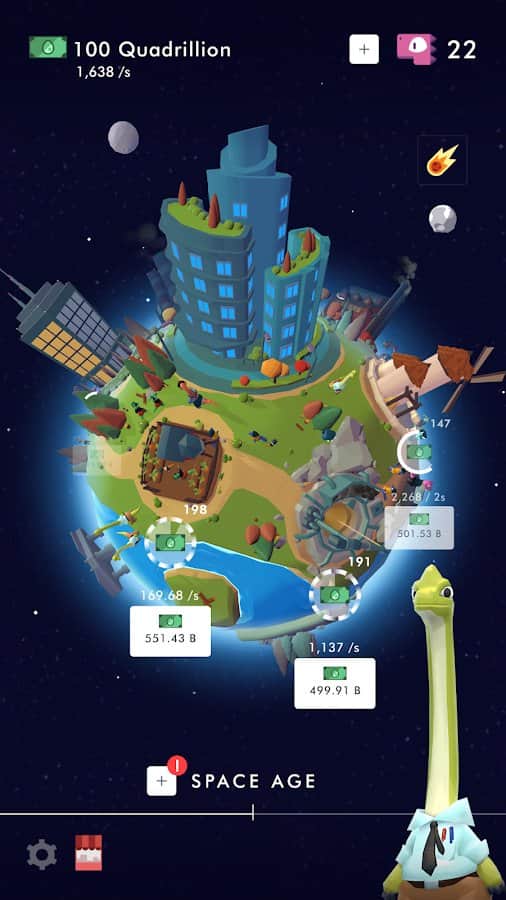 Dinozorlar da İnsan – android için bir tıklama oyunu, burada dinozor gezegenini yöneteceksiniz. Farklı dinozor türlerini kontrol altına alın ve dev bir medeniyet yaratın. Telefonunuzun veya tabletinizin ekranına mümkün olduğunca sık tıklayın ve onları gezegende yerleştirerek yeni dinozor türleri oluşturun, ayrıca enerji toplayın ve değerli kaynaklar toplayın. Farklı binalar ve çiftlikler inşa edin ve dinozorlara çalışmaları için yardımcı olun. Parmaklarınızın hızını eğitin ve dinozorlar dünyasını en kısa sürede yaratın. Çeşitli görevleri ve misyonları yerine getirin ve sayısız iyileştirmeyi uygulayın.