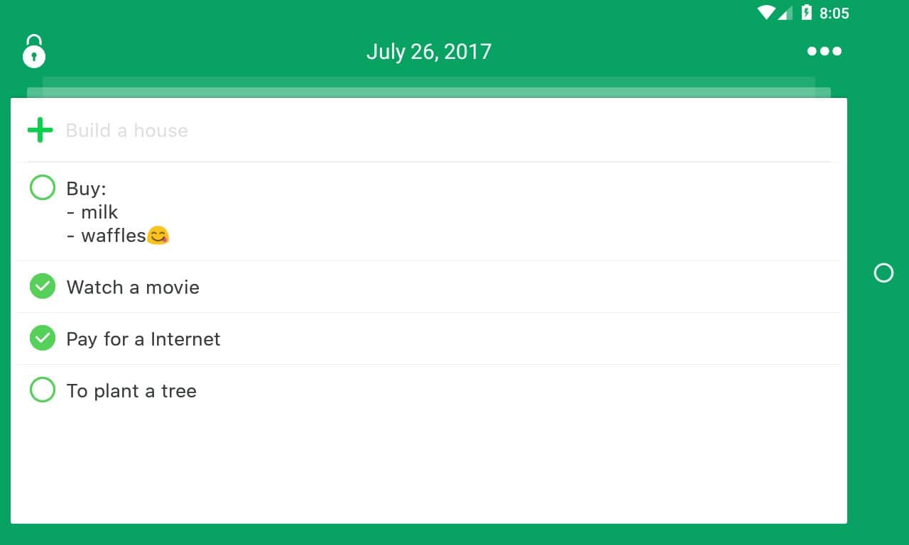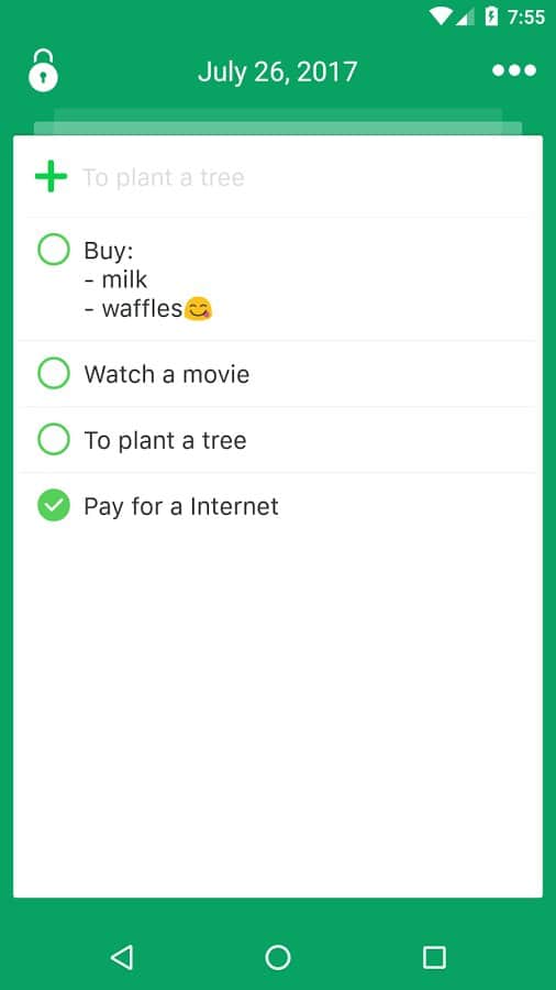 Bunu Yap - Herhangi bir gün için görev listenizi oluşturmanızı sağlayan son derece basit ve anlaşılır bir uygulamadır. Birkaç hoş özelliği vardır; örneğin, notlarınızın rengini seçerek onları daha önemli ve daha az önemli olarak ayırabilirsiniz. Ayrıca, notlarınıza şifre koyarak, kimsenin sizin izniniz olmadan onları okumasını engelleyebilirsiniz. Bu uygulamada gereksiz hiçbir şey yoktur ve neredeyse hiç yer kaplamaz.