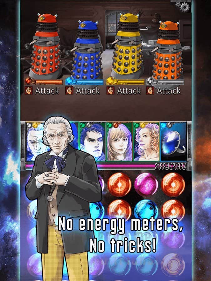 Doctor Who: Legacy - android için bir üçlü eşleştirme oyunu. Bu oyunda Doktor Who ile birlikte zaman ve mekânda bir yolculuğa çıkacak ve tüm tehlikeli olayları yaşayacaksınız. Diziden tüm favori bölümlerinizi yeniden yaşayın ve Clara, Rory, Amy ve daha birçok arkadaş ve müttefikten oluşan bir ekip kurun.