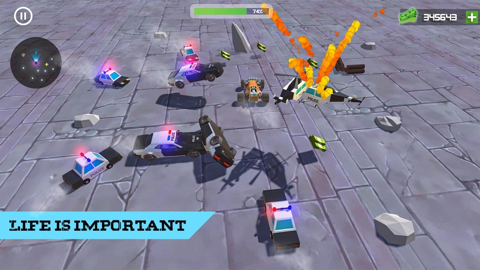 Polisten kaç - Polis araçlarıyla çarpışmalardan kaçınmayı deneyin, çünkü onlar sürekli etrafınızı sarmaya çalışıyor! Bu andan itibaren son derece dikkatli olmalısınız, çünkü rakipleriniz her türlü yoluyla sizin otomobil yolculuğunuzu kesmeye çalışacak, bu yüzden diğer araçlardan sık sık kaçınmak zorunda kalacaksınız. Ne kadar uzun süre arenada zarar görmeden kalırsanız, rakipleriniz o kadar çok saldırmaya hazırlanacak ve zorluk, öncekinden kat kat artacak. Kendi sürüş becerilerinizi geliştirin ve zorluğu deneyimleyin.