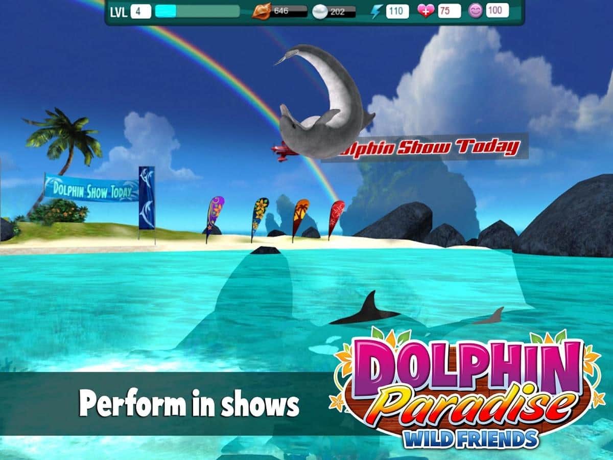 Dolphin Cenneti: Vahşi Arkadaşlar - telefonunuzda bir delfin ile birlikte oynayabileceğiniz bir android oyunudur. Onunla ilgilenmeli, lezzetli yiyecekler vermeli ve çeşitli numaralar öğretmelisiniz ki yarışmalara katılabilsin. Ayrıca, delfinin yaşadığı mavi lagünü deniz jellerinden temizlemeli ve bu sayede deniz kabukları ve inci şeklinde bonuslar kazanmalısınız. Bu bonusları yarışmalar için gereç satın almak, ödüller veya başka bir delfin almak için harcayabilirsiniz.