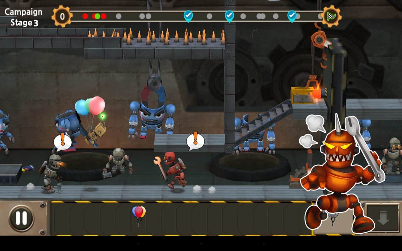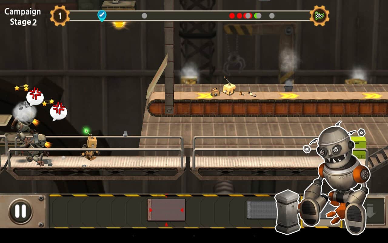 Durma - robotun kaydırmalı macerası. Oyun, koşucu ve platform oyunları gibi türleri bir araya getiriyor. Küçük robota, karşısına çıkan tüm tehlikelerden kaçmasına yardım et, çünkü oyunda çok fazla tehlike var. Robota fabrikadan kaçmasına yardım et - umduğu özgürlüğü bulsun ve metal başının üzerindeki gökyüzünü görsün.
