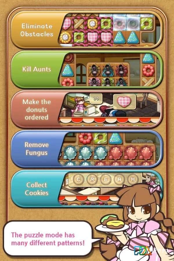 Donut Fırını Kaydırmalı Bulmaca - Android için yeni bir üçlü eşleştirme oyunu. Bu oyun size birçok sürpriz hazırladı: çeşitli görevler ve hedeflerle beş farklı oyun modu. Ayrıca, oyunun ilerleyişi sırasında oyun parası kazanacaksınız, bu para ile kendi kafenizi inşa etmeniz gerekecek. Oyunda toplam doksan beş seviye var, bu da size sıkılma fırsatı vermeyecek.