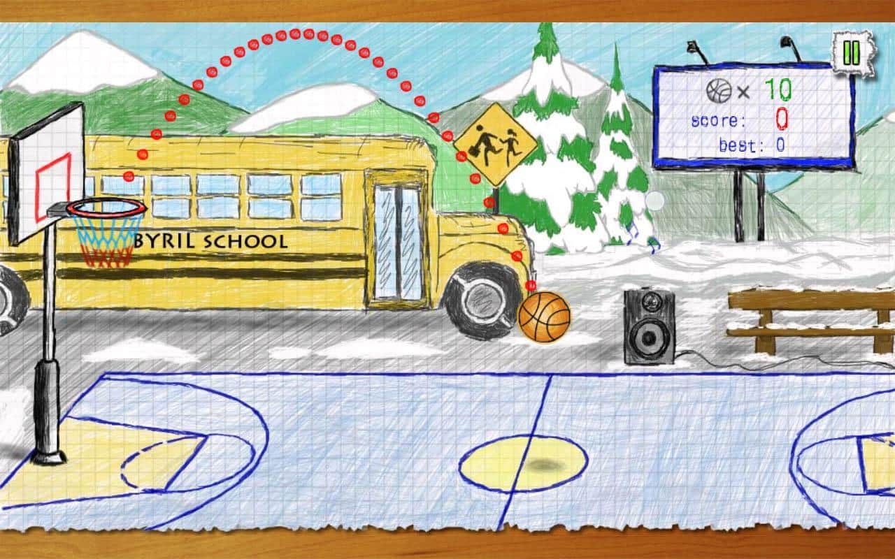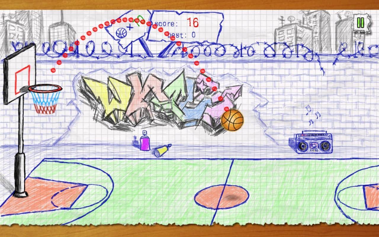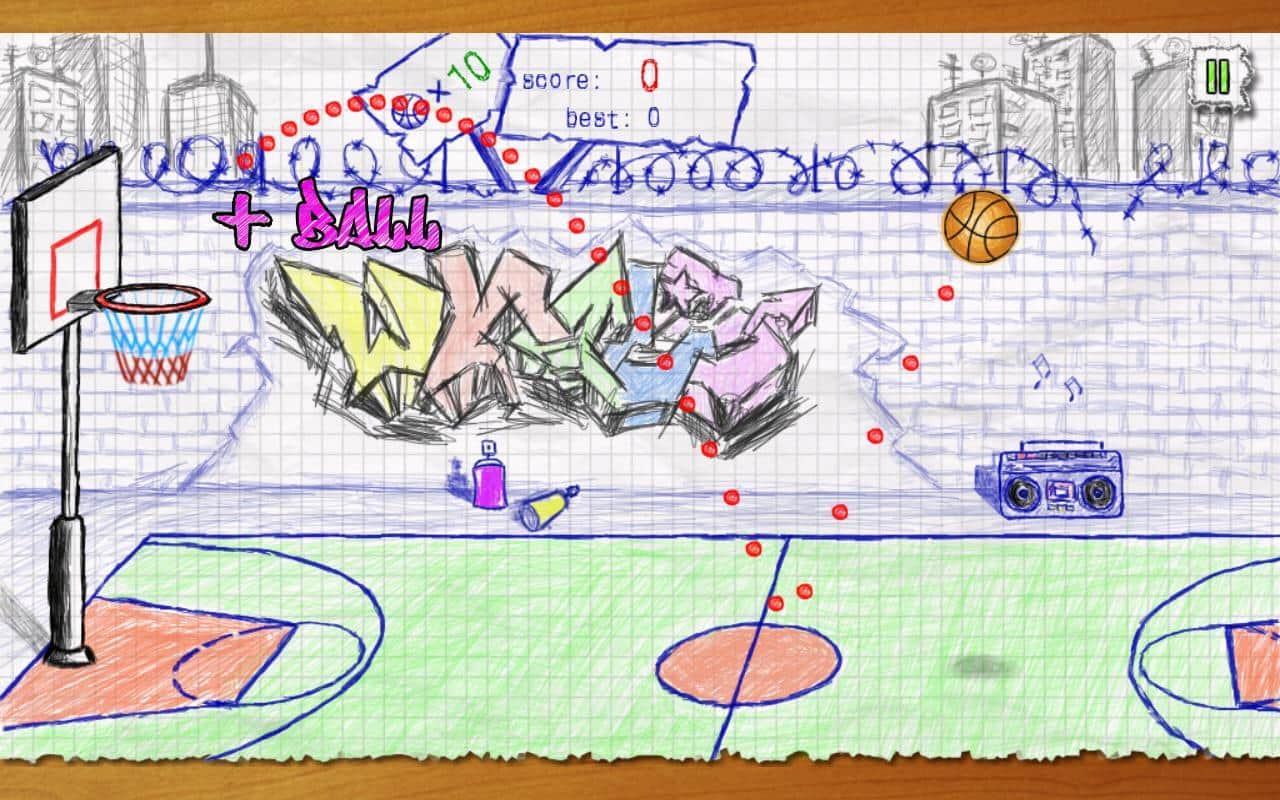 Doodle Basketbol - Basit ama aynı zamanda ilginç ve heyecan verici bir android oyunu, gerçekçi fizik ile. Oyun tamamen kağıt çizim tarzında yapılmış olup, ona unutulmaz bir atmosfer katıyor. Oyunun amacı, sınırlı sayıda top kullanarak seviyede maksimum puanı kazanmaktır. Doğru atışlarla ek toplar kazanırsınız. Ne kadar yüksek bir doğruluk oranına sahip olursanız, o kadar çeşitli bonuslar sizi bekliyor.