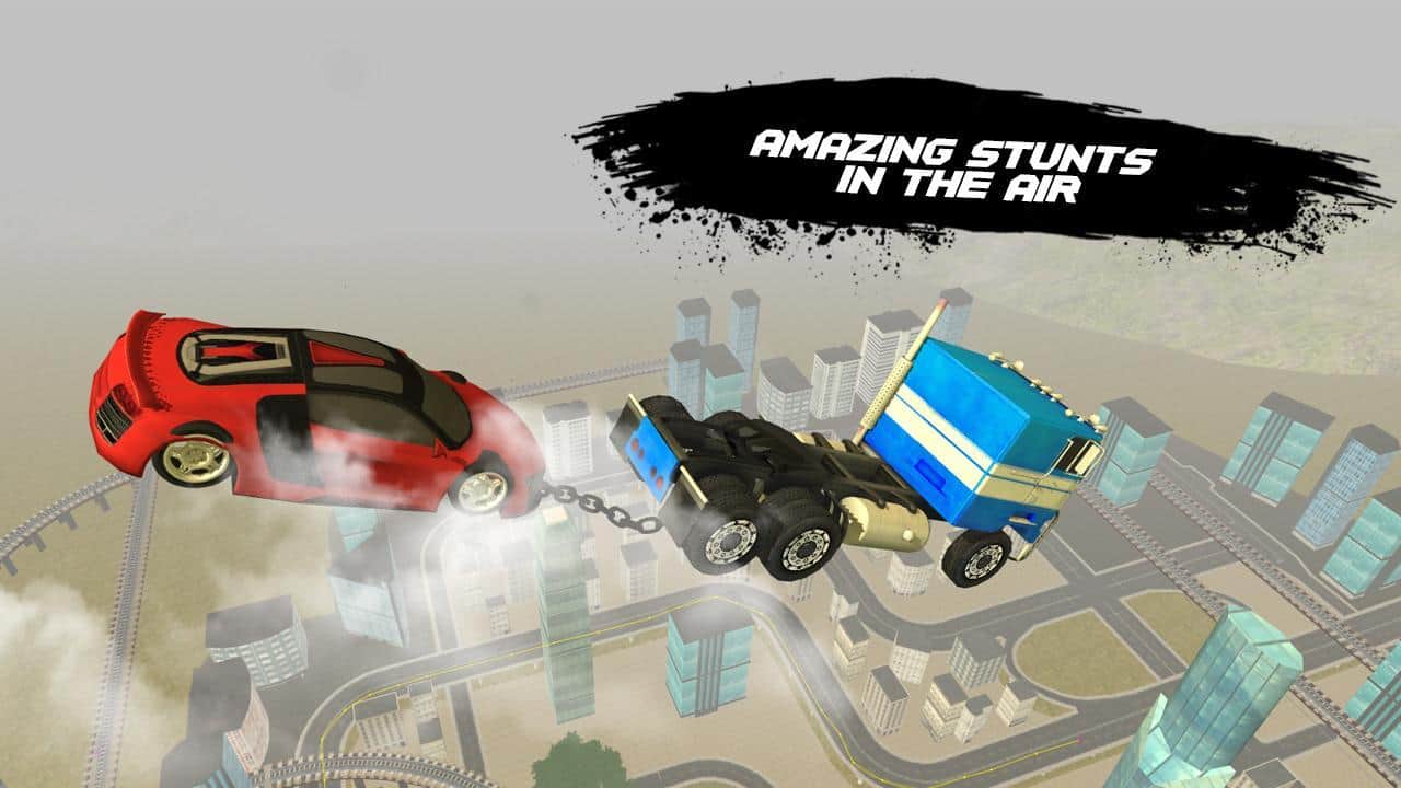 Çift İmkansız Mega Ramp 3D – Android için heyecan verici bir oyun, burada birçok pistte, yerden yükseklerde süzülen araçlarla yarışacaksınız. Oyunda sunulan araçlardan birini seçin ve harekete geçin, oyunun zorluğu, aracınızın tamponuna bağlı olan başka bir aracın, atlayış yapmanızı ve tehlikeli numaralar gerçekleştirmenizi zorlaştıracak olmasıdır. Tehlikeli pistlerde gidin ve havada zorlu numaralar yapın, rampalardan uçarak. Bu pistte mümkün olduğunca uzun süre kalmaya çalışın, aşağı düşmeden ve zamanınıza göre hesaplanacak bonus ödülünü kazanın.