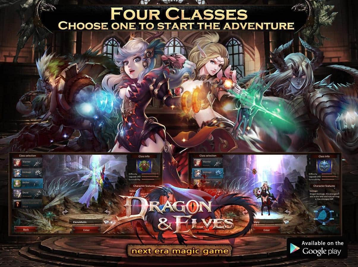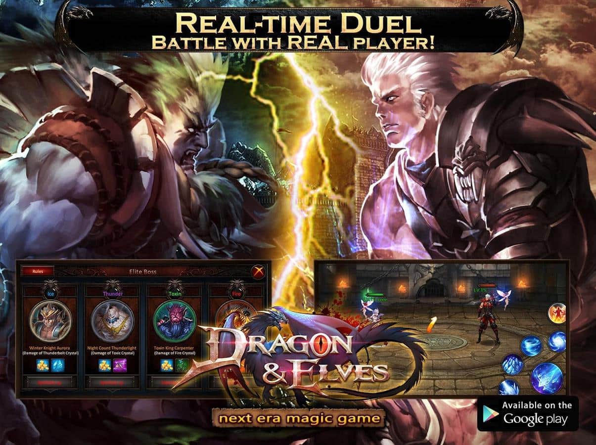 Ejderha ve Elfler – Android için bir RPG, burada başka bir kıtada olacak ve farklı ırklar arasında büyük bir savaşta yer alacaksınız. Oyunda sunulan sayısız kahramandan birini seçin, her biri benzersiz yetenekler ve silahlarla donatılmıştır. Bu oyunda kadim tanrılarla ve diğer güçlü ırklarla savaşacaksınız. Çeşitli görevleri tamamlayın ve kahramanınızın becerilerini geliştirin, ona efsanevi silahlar ve ekipmanlar kazandırın. Dünyanın dört bir yanındaki diğer oyunculara meydan okuyun ve arenada onlarla savaşarak en iyi sonuçları elde edin ve en güçlü ve kudretli savaşçı olun.