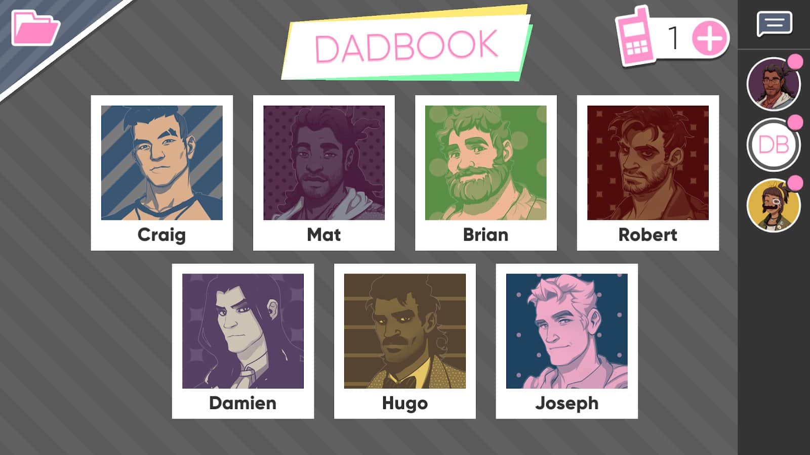 Dream Daddy – Android için sürükleyici bir oyun, burada bir baba rolünü üstlenecek ve amacınız diğer babalarla tanışmak ve iletişim kurmak olacak. Bu oyunda, kızınızla birlikte uykulu bir sahil kasabası olan Maple Bay'e yeni taşındınız ve çevrenizde birçok yalnız ve dost canlısı baba yaşadığını keşfettiniz. Göreviniz, mümkün olduğunca çok baba ile tanışmak ve aranızdan en iyi baba kim olduğunu belirlemek. Bu oyun, ek mini oyunlarla doludur ve birkaç farklı sonu vardır. Babalarla dostça buluşmalara katılın, onlarla iletişim kurun ve mesajlar yazın. Bu oyunda toplam 7 farklı ve karizmatik baba bulacaksınız.