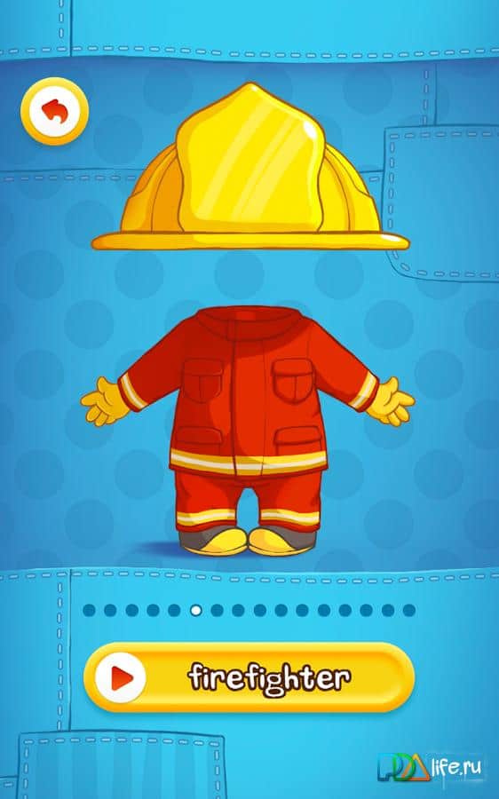 Giydir - Meslekler - android için bir oyun, burada bebekleri çeşitli mesleklerin kıyafetleriyle giydirmeniz gerekiyor. Elinizde birçok kostüm, forma ve kıyafet var, kendinizi gösterin, her duruma uygun kostümler giydirin. Oyun çocuklar için mükemmel, düşünmeyi ve mantığı geliştiriyor.