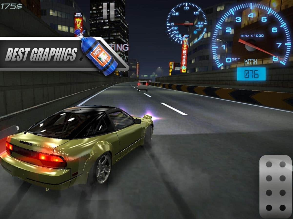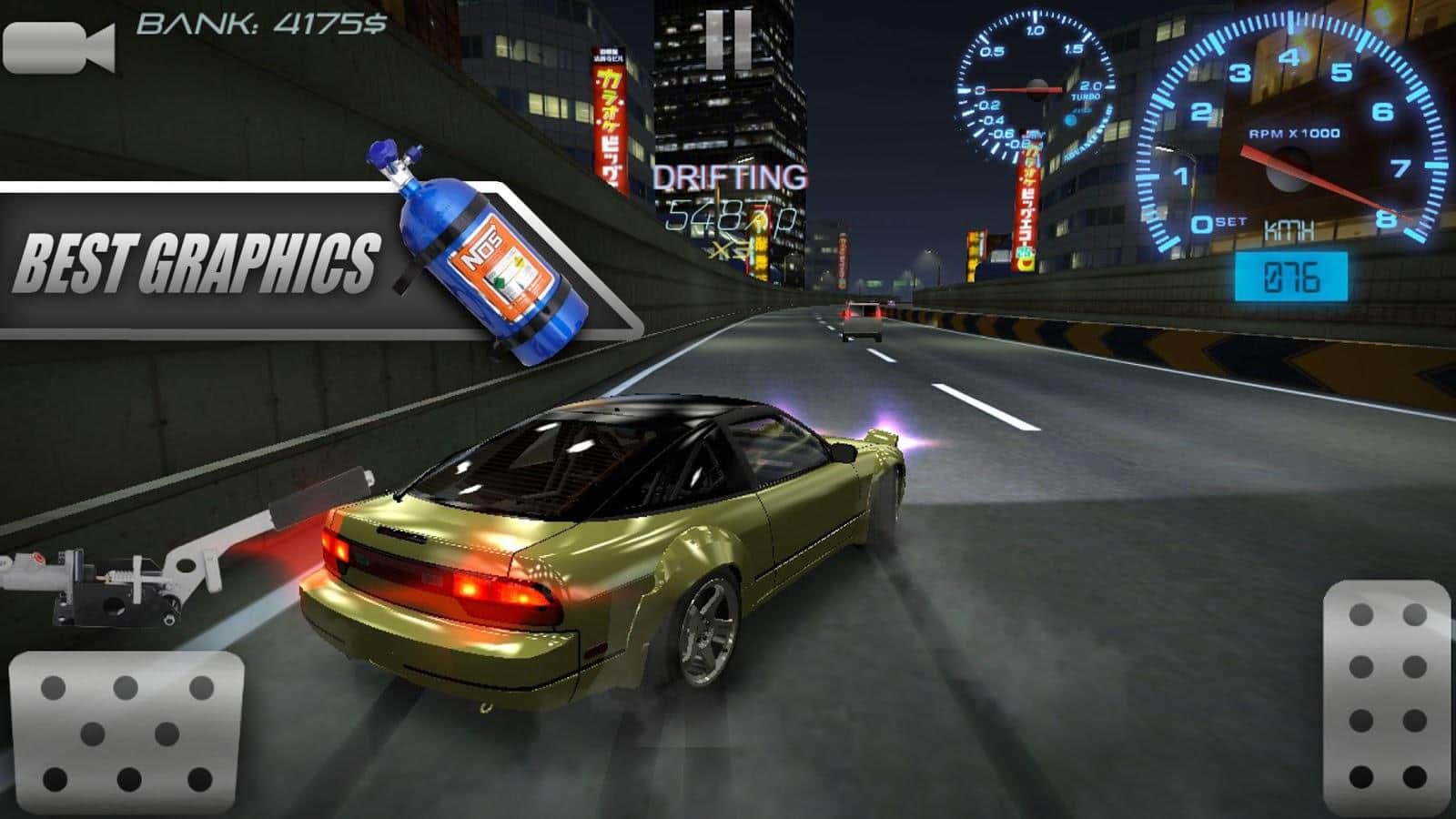 Drift Streets Japan - Drift tutkunları, Japonya'nın gece şehrinde heyecan verici yarışlara katılın. Bu oyun oldukça basit bir şekilde yapılmış, ancak hem hoş grafiklere hem de sadece birkaç pedal ile ilerleyip fren yapabileceğiniz basit bir kontrol sistemine sahip. Akıllı telefonunuzu eğerek dönebilirsiniz. Ayrıca burada oldukça detaylı bir fizik motoru var, bu yüzden yarışmak oldukça ilginç olacak.