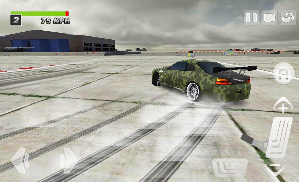 Driftkhana Freestyle Drift Uygulaması - Android OS için oldukça iyi bir drift simülatörüdür. Basit kontroller beni gerçekten memnun etti, hızlı bir şekilde alışıyorsunuz. Tüm eylemler bir askeri üste ve havaalanında gerçekleşiyor. Driftin çeşitli harika hareketlerini yaparken, çeşitli engellerle karşılaşacağız. Yanmış lastik kokusu burnunuza dolacak ve oyunun fiziği sadece keyif verecek.