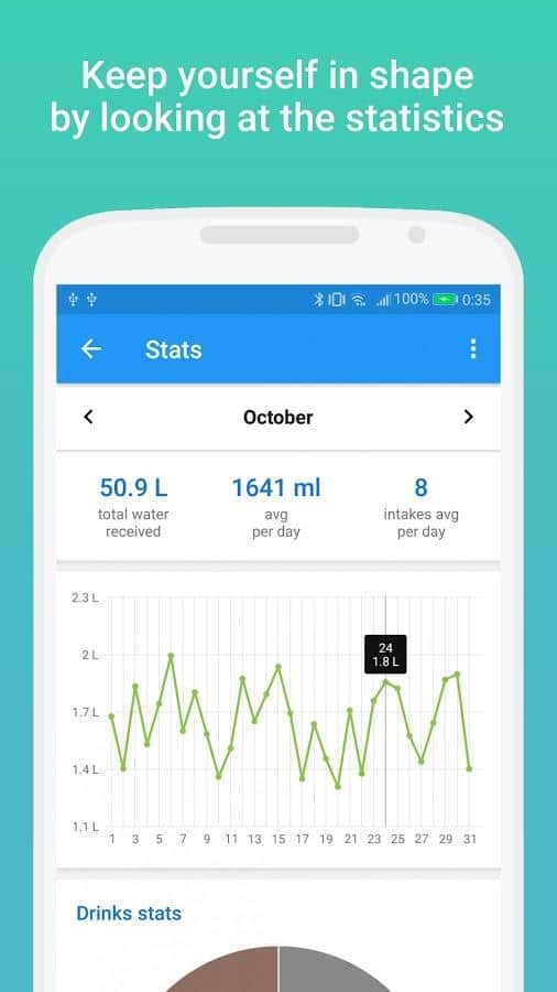 - Belirli bir süre içinde içilen suyun görsel istatistikleri