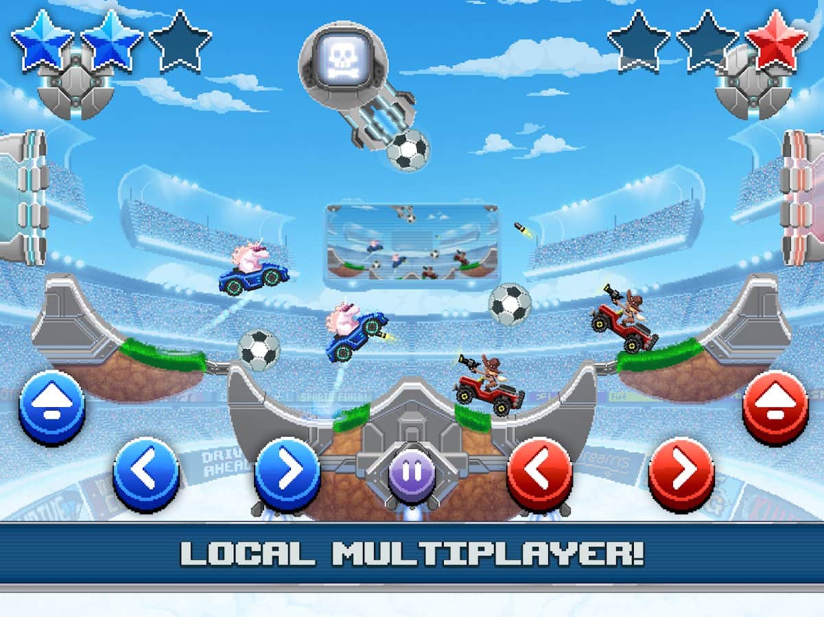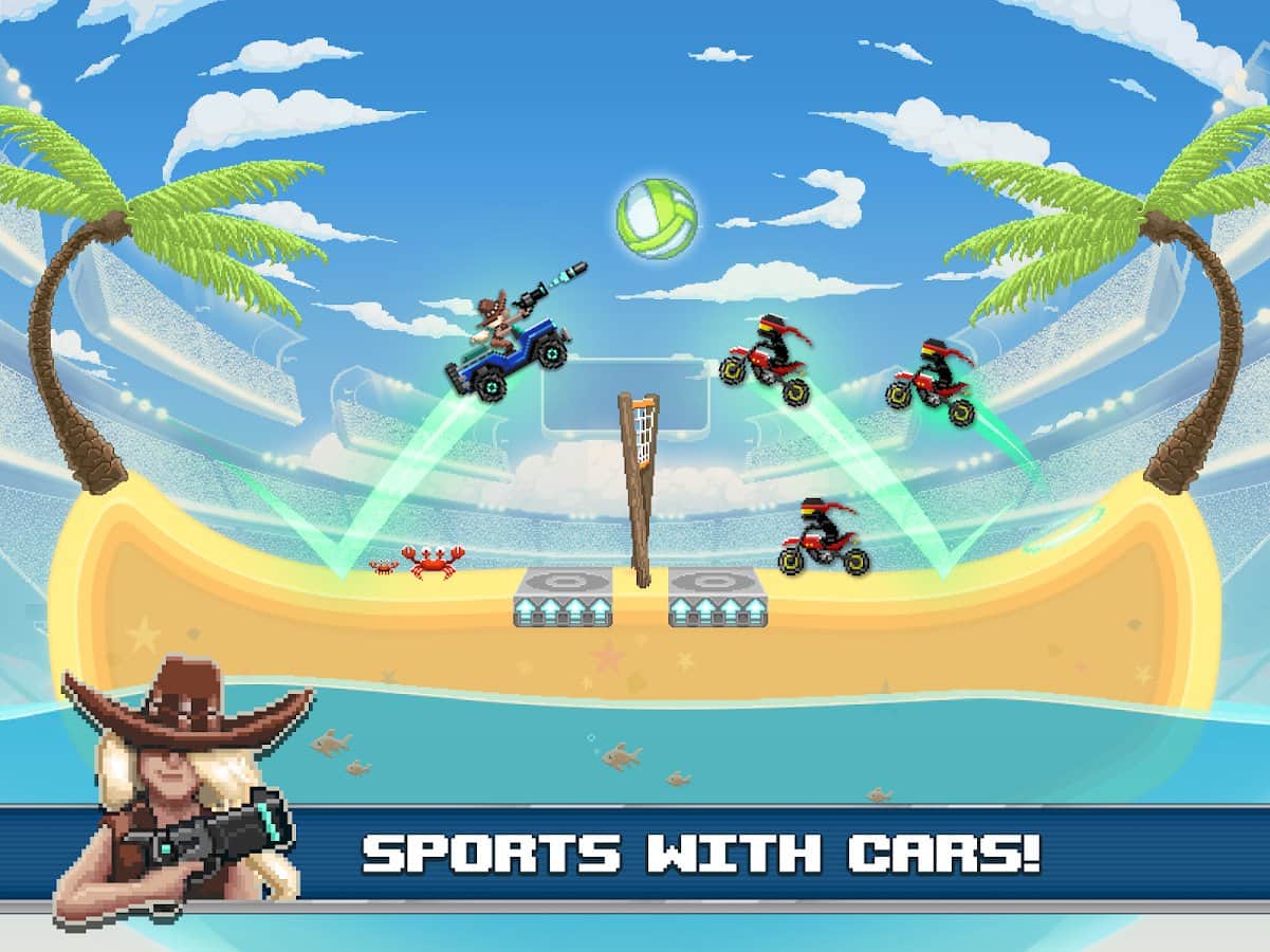 Öne Çık! Spor – Android için aşırı yarış oyunu, burada bir spor arabasını kontrol edecek ve futbol oynayacaksınız. Bu oyunda, motocross motosikletlerinden dev kamyonlara kadar geniş bir spor araba yelpazesi bulacaksınız. Kendinize uygun olanı seçin ve oyuna başlayın. Tek oyunculu modda becerilerinizi geliştirin ve dünyanın dört bir yanından en güçlü oyunculara veya arkadaşlarınıza meydan okuyarak onlara birer birer beklenen goller atın. Oyun tekrarlarını izleyin ve onları sosyal medyada paylaşın. Oyun, harika piksel grafikleri, benzersiz ve eşsiz karakterleri ve sayısız ödülleriyle sizi memnun edecek.