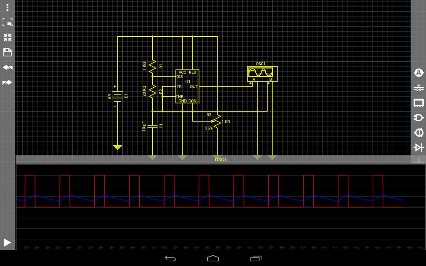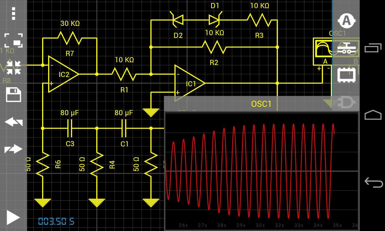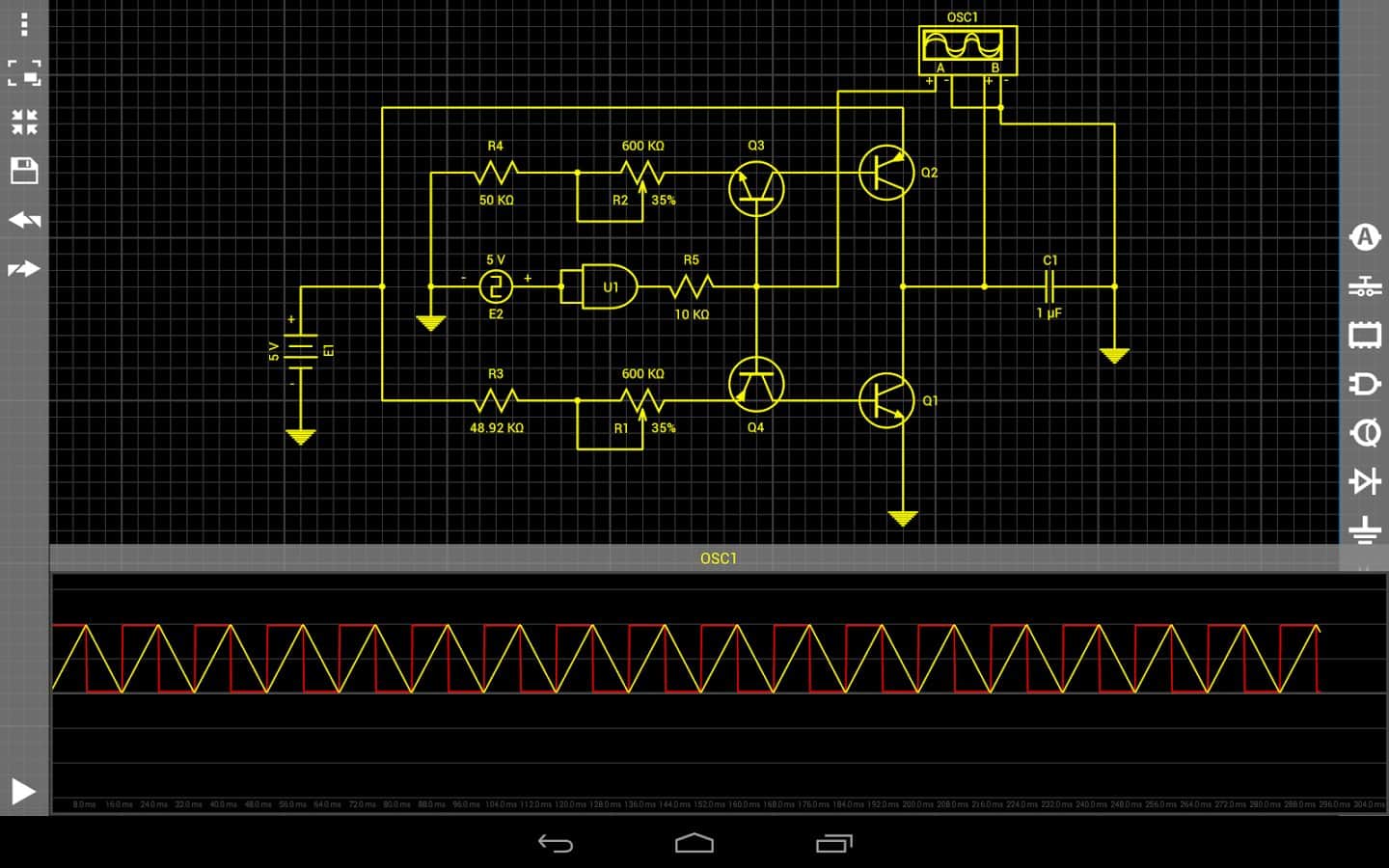 Android için, türünün tek örneği olan bir SPICE simülatörüdür. Programın görünümü, PC'deki OrCAD gibi arayüzlerde görebileceğiniz şeye maksimum derecede yakındır.
