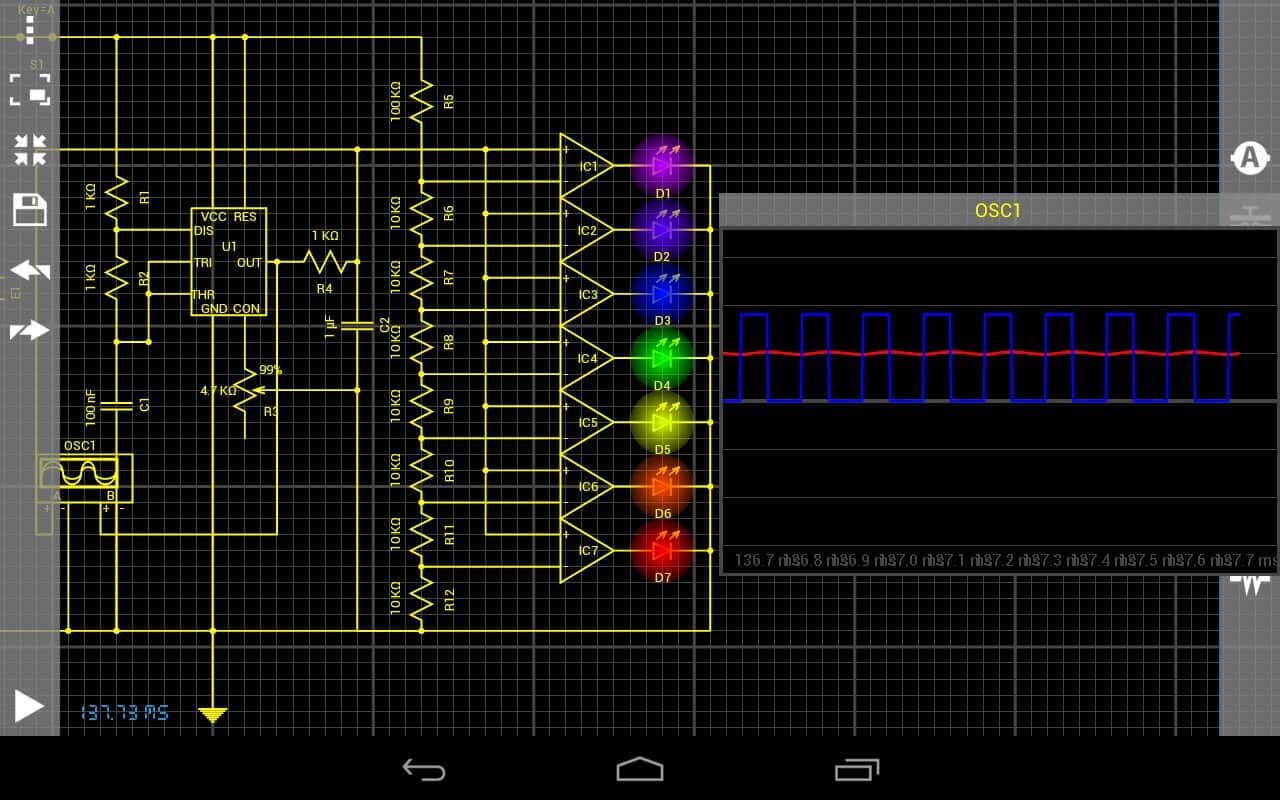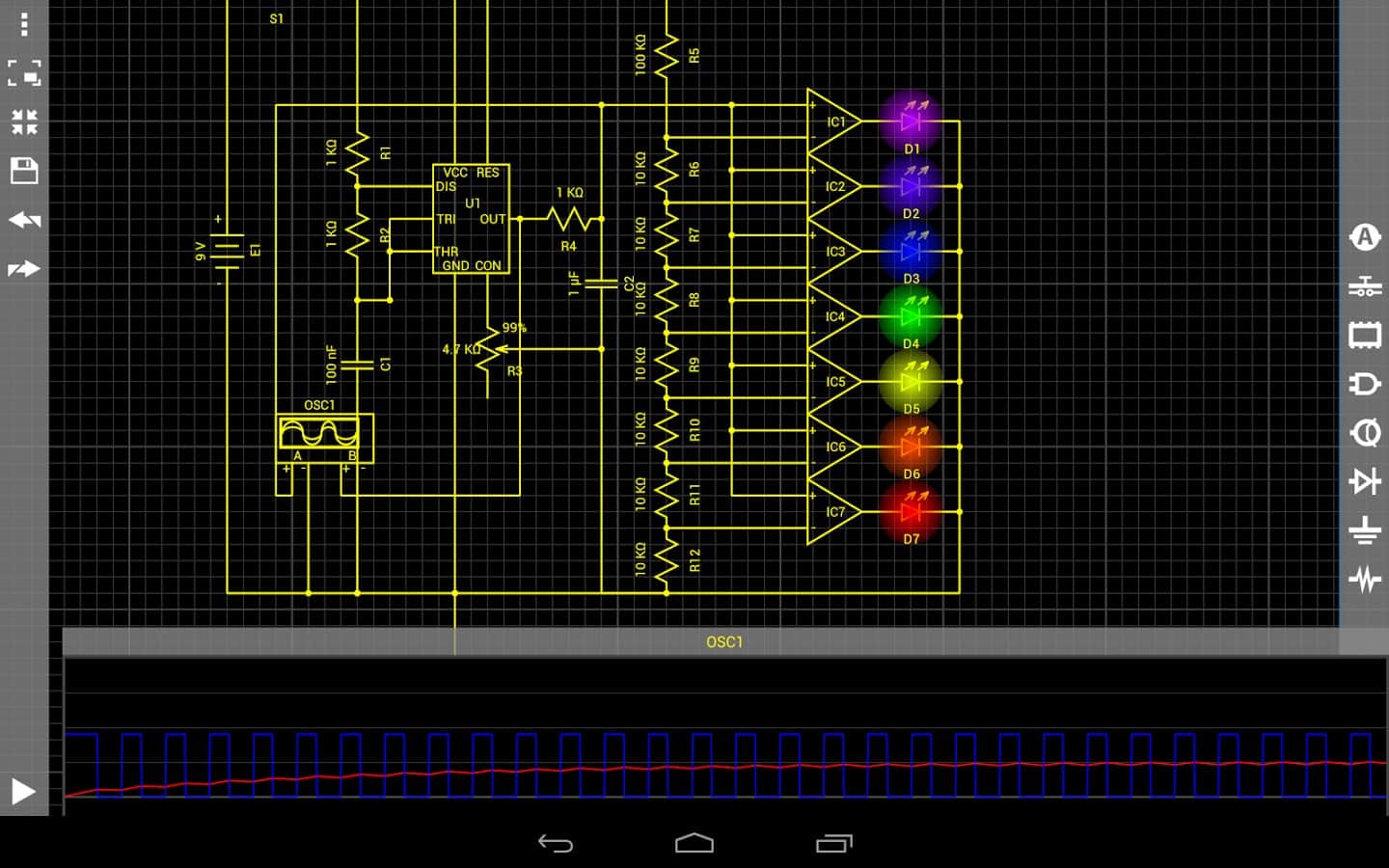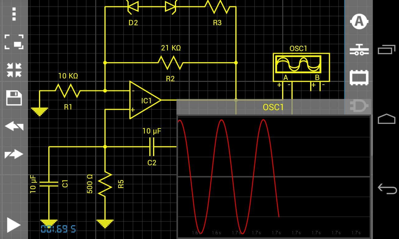 Android için, türünün tek örneği olan bir SPICE simülatörüdür. Programın görünümü, PC'deki OrCAD gibi arayüzlerde görebileceğiniz şeye maksimum derecede yakındır.