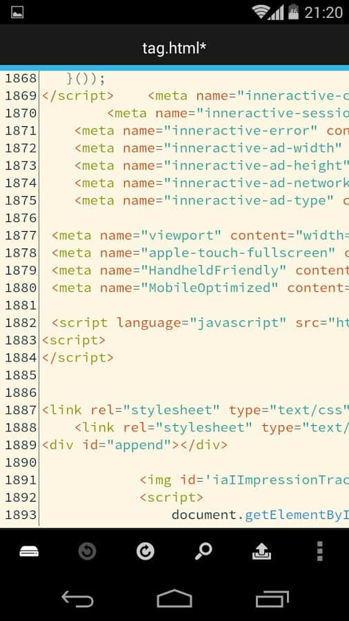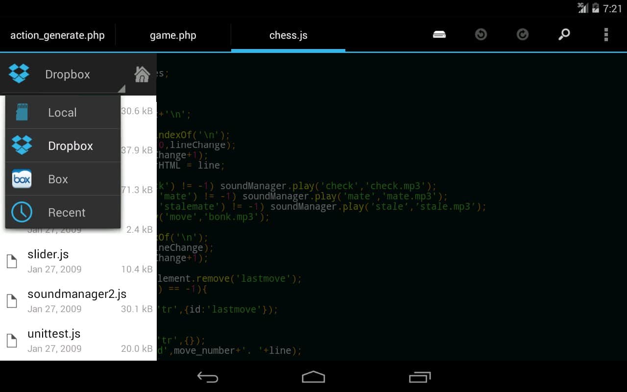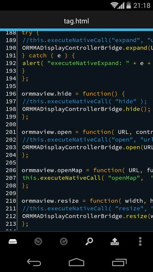 DroidEdit (ücretsiz kod editörü) - Kod düzenleme için eğlenceli bir uygulama, eğer root izinleriniz varsa, akıllı telefonunuzun kodunu bile düzenleyebilirsiniz. Ayrıca sözdizimini vurgular ve birçok dili destekler.