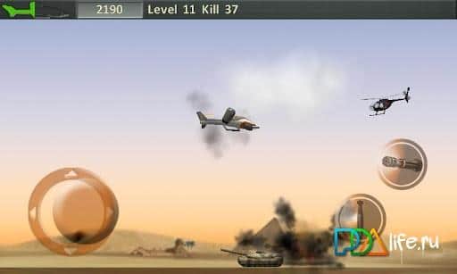 Oyunda sizi 20 seviyeli 3 lokasyon ve harika 2D grafikler bekliyor. Helikopterin kontrolü sanal bir joystick ile, silah kontrolü ise iki sanal düğme ile yapılmaktadır.