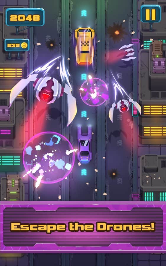 Drone Kaçışı – dinamik bir android oyunu, burada kendinizi futuristik bir dünyada bulacaksınız. Bu oyunda ana göreviniz araçların hareketini yönetmek ve çarpışmalardan kaçınmak için hızlarını artırmak veya azaltmaktır. Bu oyunda mümkün olduğunca uzun süre dayanarak inanılmaz sonuçlar elde edin ve ayrıca rekor kırmak için sayısız bonus kullanın. Bu oyunu oynamak çok kolay ama iyi sonuçlar elde etmek için çaba göstermeniz ve tepki hızınızı gerçekten test etmeniz gerekecek. Yol boyunca paraları toplamayı unutmayın ve yeni ulaşım araçlarının kilidini açın.