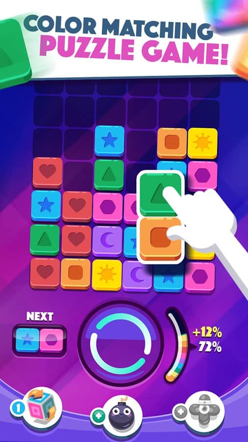 Bırak! Çılgın Renk Bulmacası – Android için eğlenceli bir bulmaca oyunu, Tetris’e uzaktan benziyor. Bu oyunda ana göreviniz, telefonunuzun veya tabletinizin ekranında farklı renklere sahip özel blokları yerleştirmektir. Bu oyunda mantığınızı ve zekanızı geliştirin ve blokları bir araya getirerek aynı renkten üç veya daha fazla kenarı bir araya getirin. Gereken sayıya ulaştığınızda, bloklar patlayacak ve size puan kazandıracak. Her adımınızı dikkatlice planlayın, farklı renklerdeki bloklarla alanı doldurmayın. Bu oyunda kendi rekorlarınızı belirleyin ve liderlik tablosunda daha da yükseğe çıkmayı başarın.