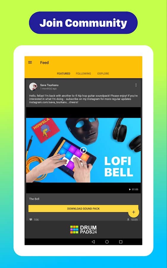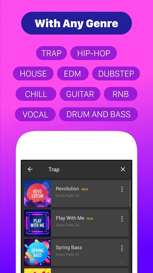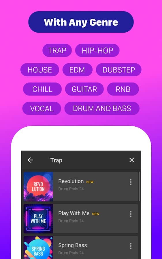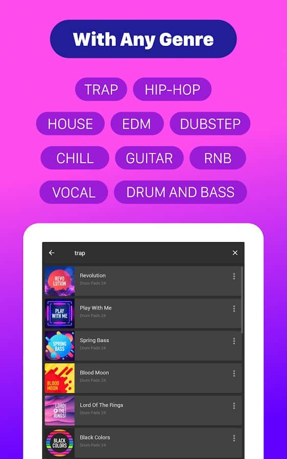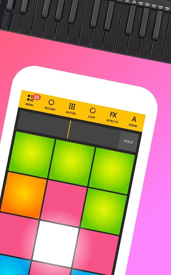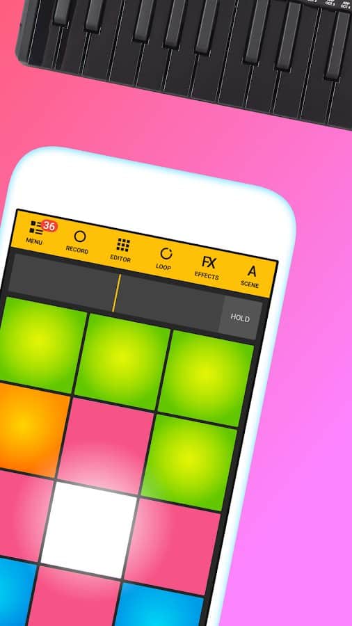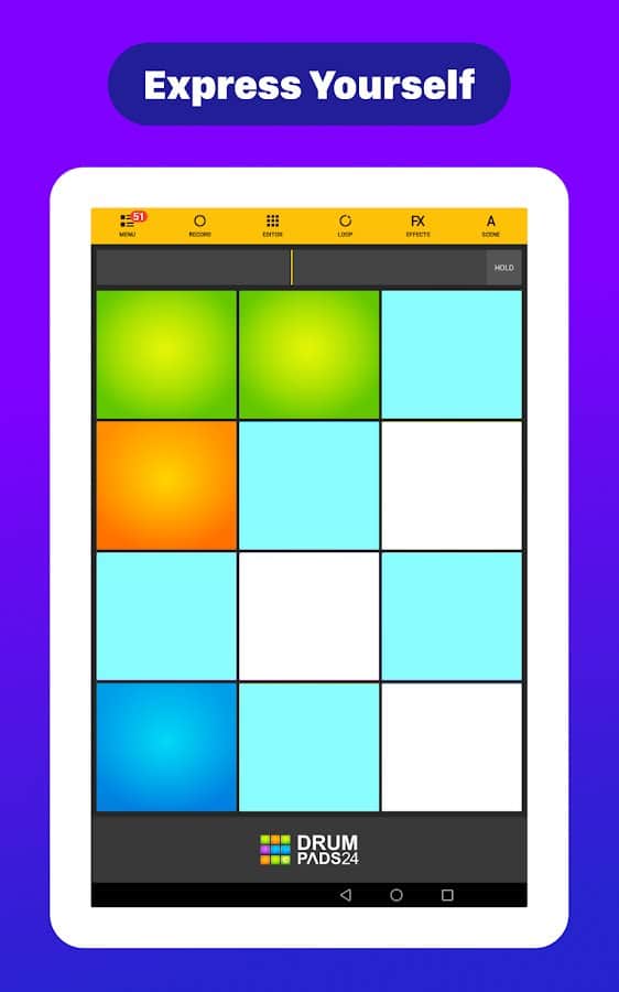 Drum Pads 24 - Android için bir uygulama, bu sayede telefonunuzda tam parçalar çalabilirsiniz. Tüm pedler renk kategorilerine göre ayrılmış ve örnek türüne göre gruplandırılmıştır, bu da size daha hızlı bir şekilde yön bulmanıza yardımcı olur. Bu uygulama ile kendi ritimlerinizi oluşturabilir, doğaçlama yapabilir ve arkadaşlarınızla oynayabilirsiniz.
