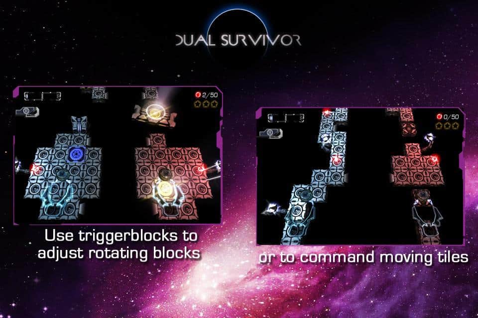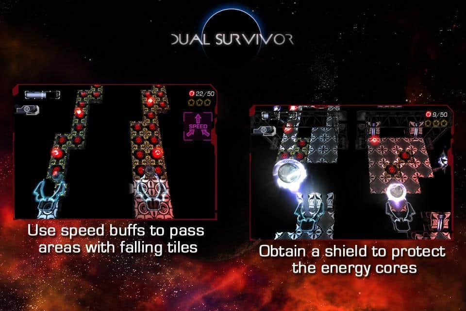 İkili Hayatta Kalma - Android için harika bir uzay arcade oyunudur, burada iki enerji platformunu yönetmeniz gerekiyor. Bu esnada kırmızı küreleri toplamalısınız. Uçurumlardan kaçınmak için kaydırıcıyı zamanında yolda hareket ettirmelisiniz. Oyunun en önemli özelliği ise, alanda aynı anda iki şerit bulunmasıdır. İkisini de yetişebilmek için tüm dikkatinizi göstermeniz gerekiyor.