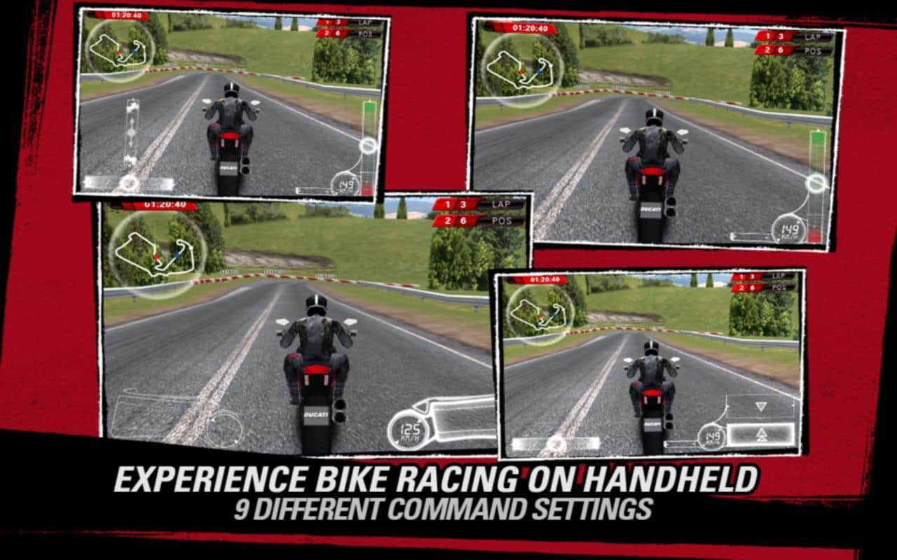 Ducati Yarışı - harika güçlü bir simülatör, android'de motosiklet yarışları - basit ve gerçekçi! En pahalı ve şık Ducati motosikletini seçin ve heyecan verici yarışlara başlayın. 2011 model 6 motosiklet seçeneğiniz olduğunu belirtmek gerekir. Tüm detaylar ayrıntılı ve çok gerçekçi bir şekilde çizilmiş, böylece hissiyat - sanki gerçekten motosiklet sürüyormuşsunuz gibi! Ayrıca, oyunun muhteşem fiziği - dönüşlerin, çukurların, kaymaların ve diğer yolunuza dair tüm inceliklerin "zevklerini" hissedeceksiniz! Ve ses desteği - hiç de fena değil. Her modelin kendine özgü bir sesi var. Yani zevk - deniz, hatta belki okyanus!