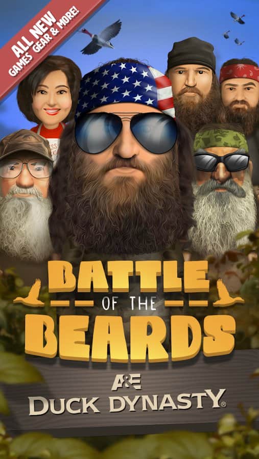 DuckDynasty: Sakal Savaşları - Amerika'nın Duck ailesinin reality şovuna dayanan bir android oyunu. Bu oyunda reflekslerinizi ve çevikliğinizi test edeceksiniz. Avcılık, balık tutma ve karakterinizi çeşitli yiyeceklerle besleme fırsatına sahip olacaksınız. Oyun ilerledikçe karakteriniz sakal, saç uzatacak ve kardeşlerine benzemek için bandana takacaktır.