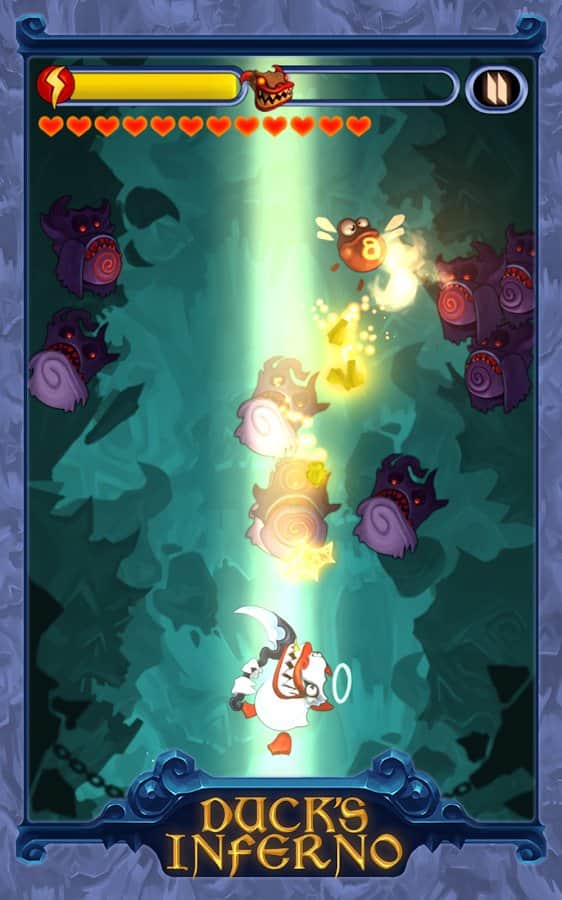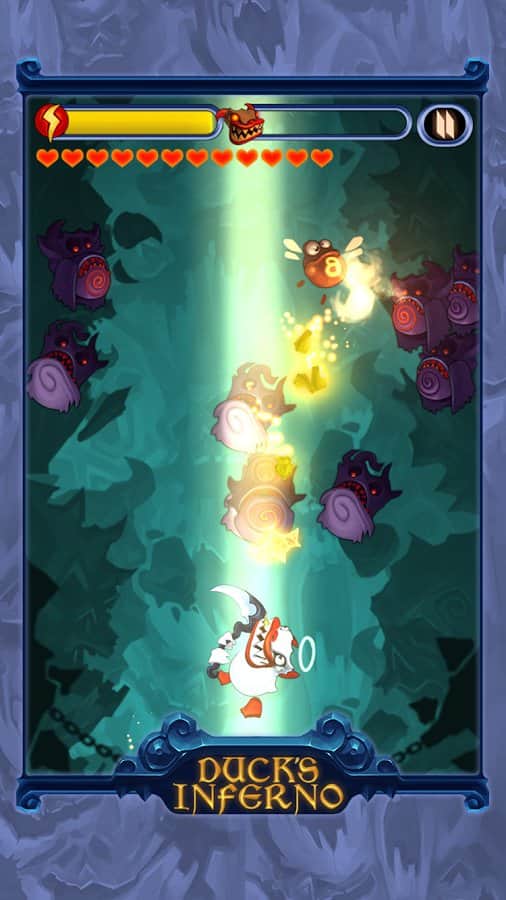 Ördeklerin Cehennemi - Yolda her şeyi kesen cehennem ördeği hakkında bir hikaye. Ana göreviniz, düşmanlarınızı biçerek yukarı zıplamak. Seviyeleri geçtikçe, düşmanlar giderek daha güçlü hale gelecek ve yeni numaralar kullanacak. Bazıları bombaları atacaktır, diğerleri ise kendileri bombaya dönüşecektir. Bu yüzden saldırı için doğru zamanı seçmeniz gerekecek. Ayrıca, cehennem ördeğinizin görünümünü geliştirebilir veya değiştirebilirsiniz.