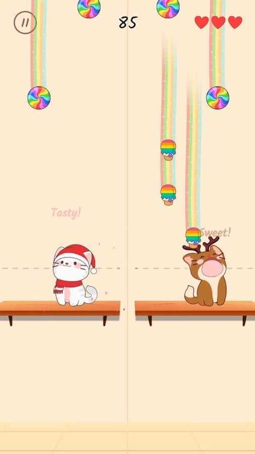 İkili Kediler: Sevimli Popcat Müzik - Güzel kedilerin yanında olmanın tadını çıkarın ve müzik veya eğlence dünyasına dalın, tüylü arkadaşlarınızla birlikte güzel melodiler icra ederek! Müzikal engelleri aşın, lezzetli atıştırmalıkları yakalayarak mükemmel uyumlu bir ses elde edin ve üstten düşen tüm dondurmaları yakalayın. Her başarıyla tamamlanan seviye sizi müzikal şöhrete ve yeni heyecan verici melodilere daha da yaklaştıracak. Onlarla eğlenin, Kedi Kulesi'ni süsleyin ve onları zamanında kedi mamasıyla beslemeyi unutmayın.