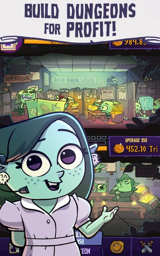 Zindan, Inc. – Android için heyecan verici bir tıklayıcı, burada yer altı kaynakları çıkaran bir yönetici olacaksınız. Bu oyun sizi "Zindan İnşaat" adlı şirkete götürecek, burada bir yönetici olup mümkün olduğunca fazla maden kaynağı çıkarmaya çalışacaksınız. Amacınız her ne olursa olsun kaynakları çıkarmaktır. Belirlenen hedefe ulaşmak için canavarlara iş verin, yeni bölgeleri fethedin ve telefonunuzun veya tabletinizin ekranına olabildiğince hızlı bir şekilde tıklayarak muazzam kazançlar elde edin. Şirketinizi vergi dairesinden ve rakiplerden koruyun ve en uygun anda şirketinizi iflas ettirerek tüm parayı alın ve yeniden kazanmaya başlayın. Arkadaşlarınızla oynayın ve haftanın en iyi yöneticisi olun.