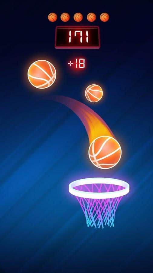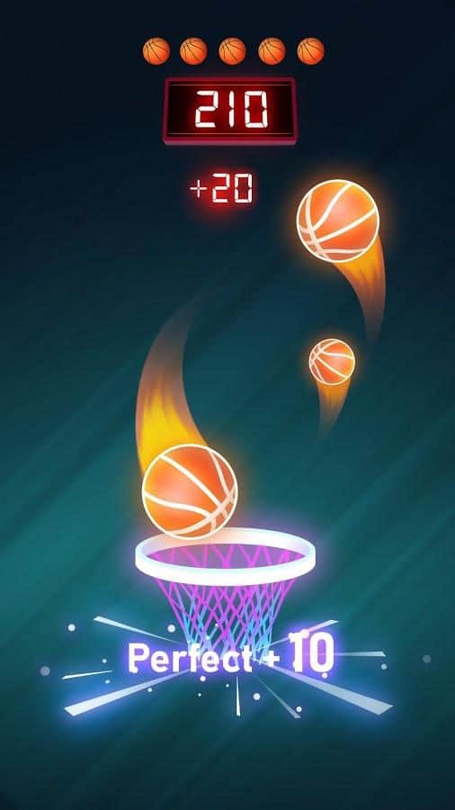 Dunk n Beat - Android için bir müzik oyunu, burada basketbol becerilerinizi test edebileceksiniz. Sepeti hareket ettirin ve topun potaya girmesini sağlayın. Sakin kalın ve topları kaçırmayın. Topu düşmeden ne kadar uzun tutarsanız, o kadar fazla ekstra hayat kazanırsınız. Önemli olan sadece topu sepetin alanında tutmak değil, aynı zamanda müziği dinlemektir. Ritmi ve melodiyi dinleyin ve kendinizi "zone"da bulacaksınız.